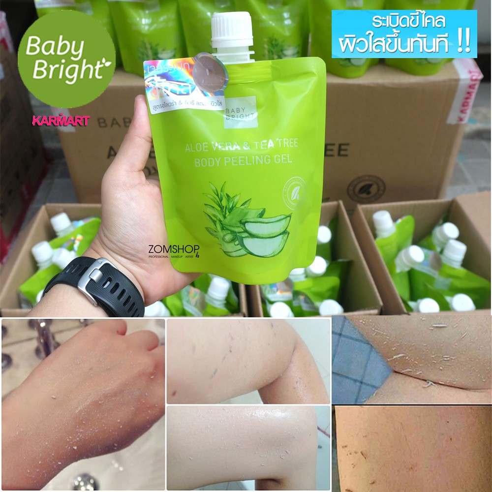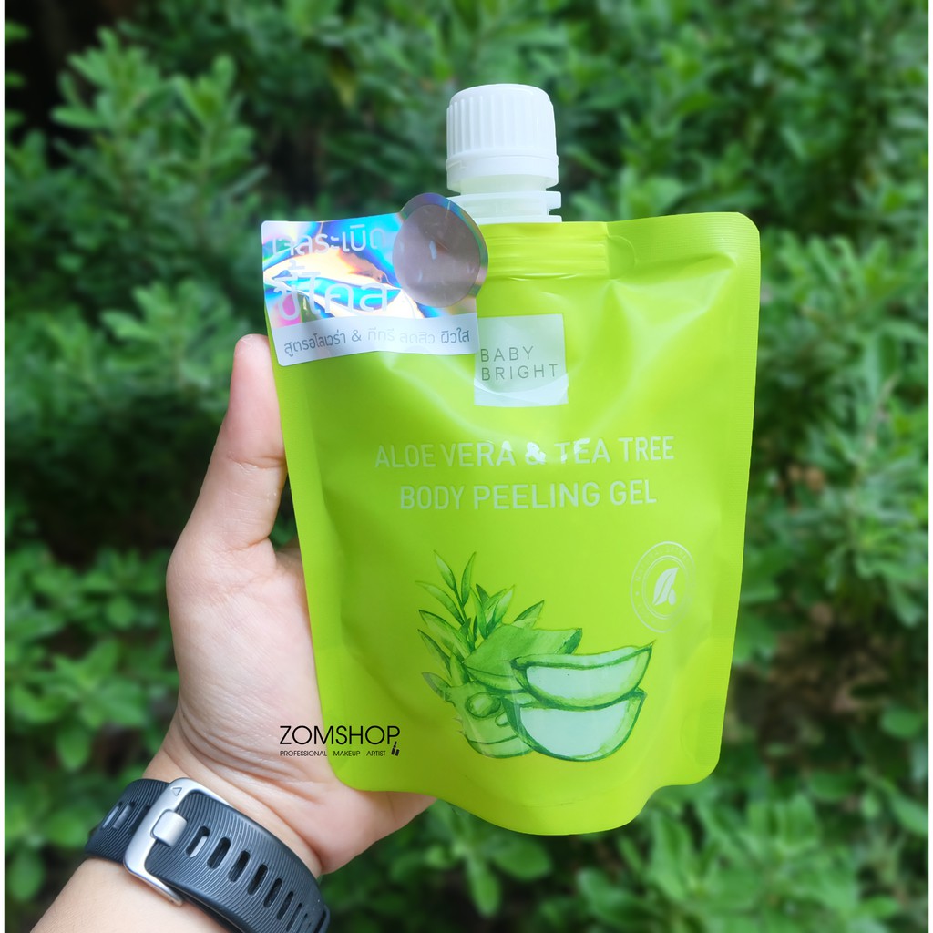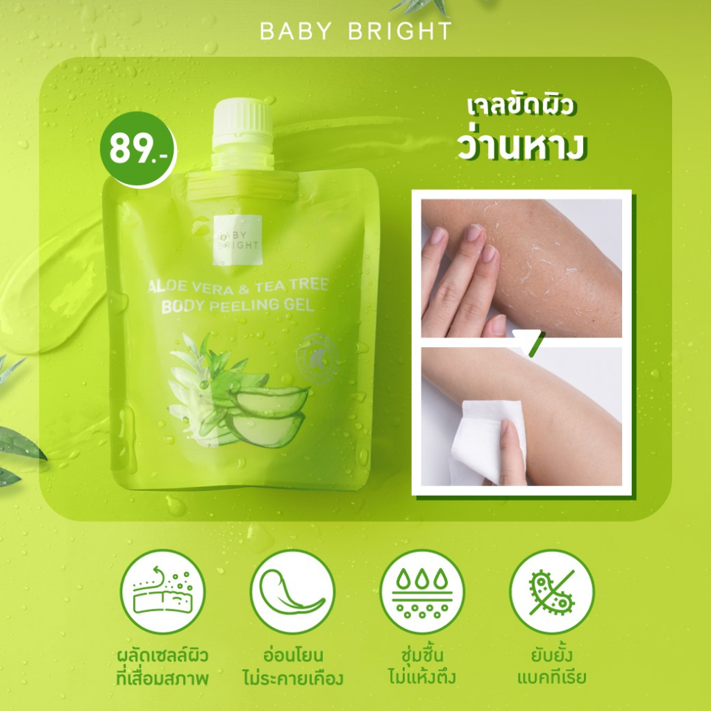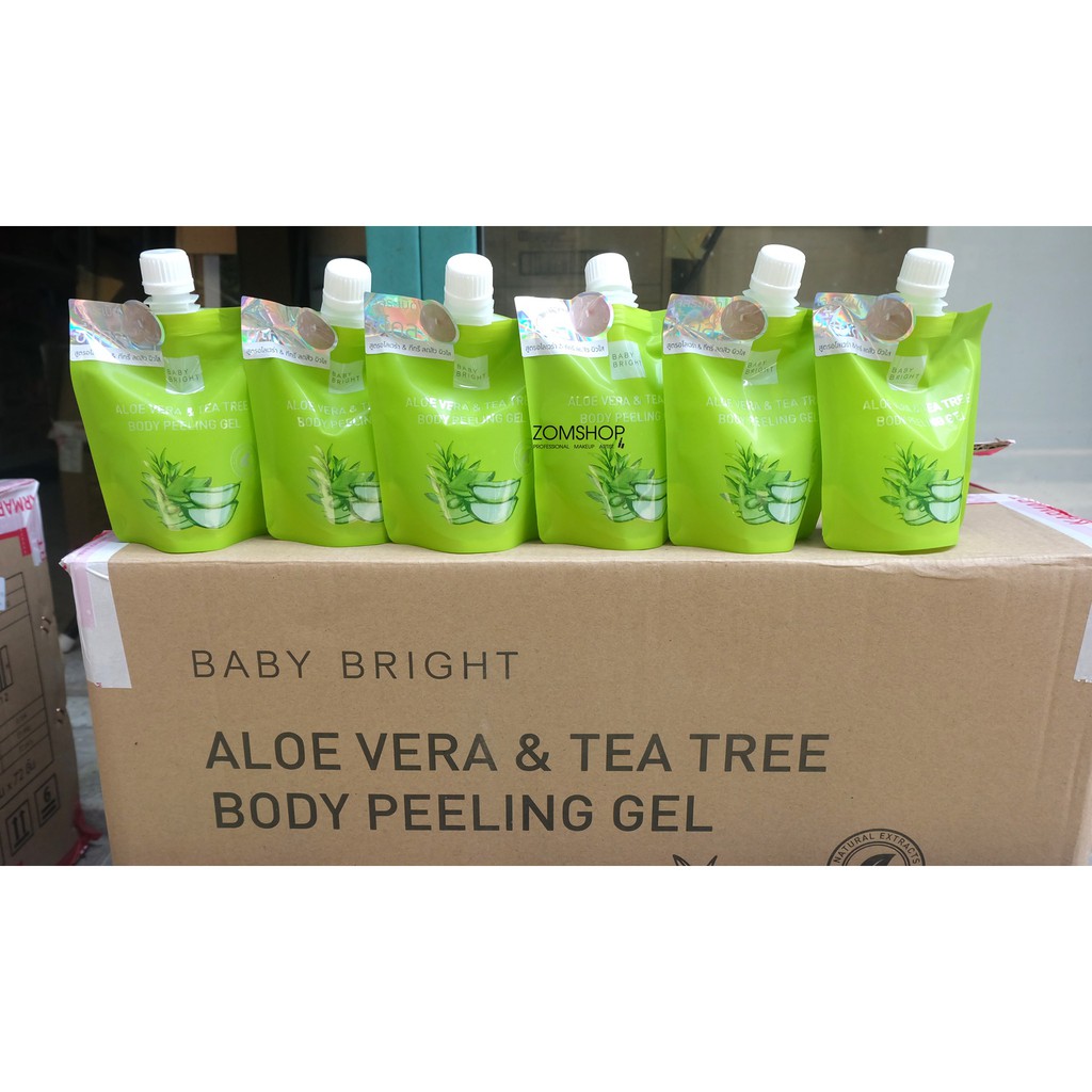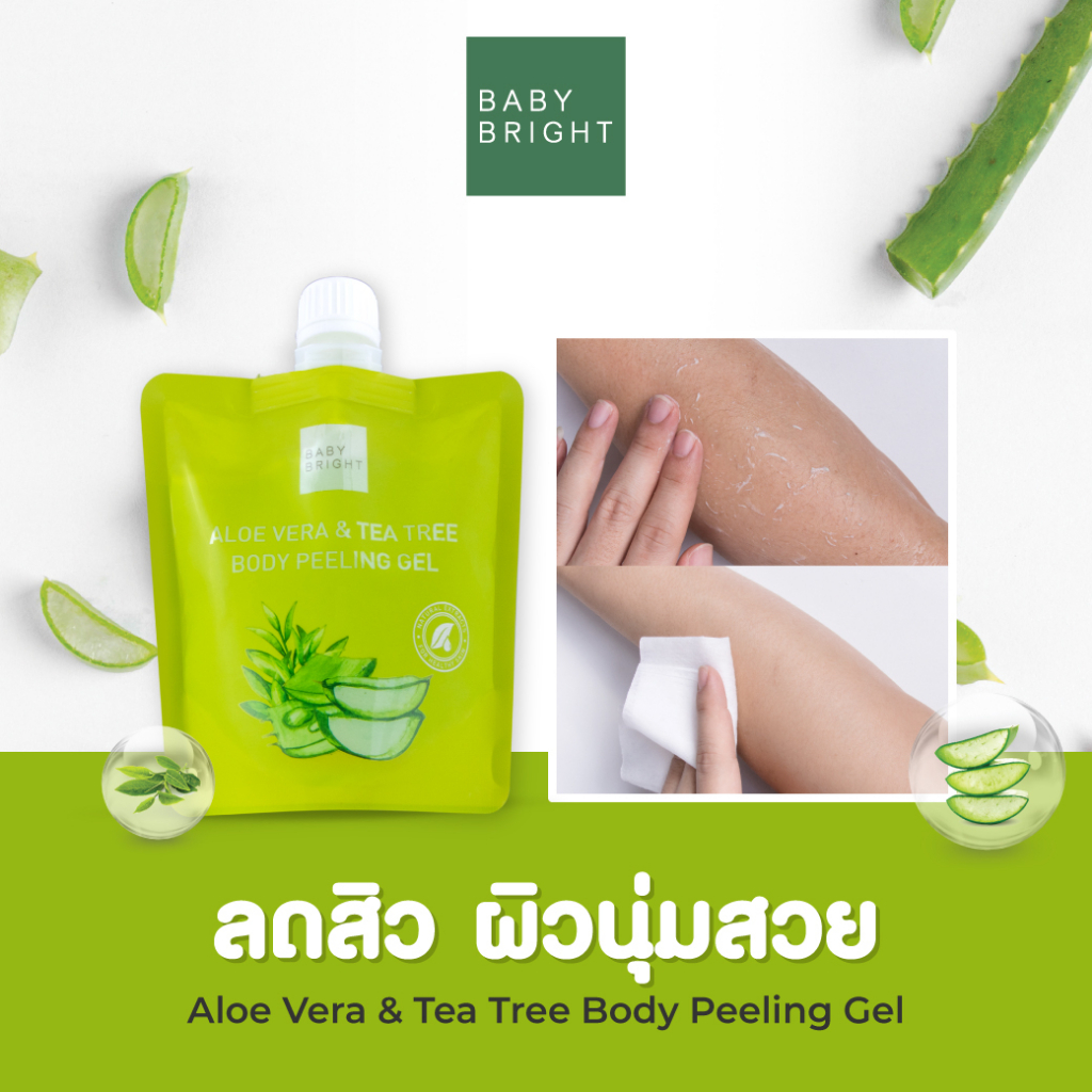 【ถุงเขียว】เจลขัดขี้ไคล ว่านหางจระเข้【สูตรลดสิว】BABY BRIGHT ALOE VERA & TEA TREE BODY PEELING GEL 200g.
