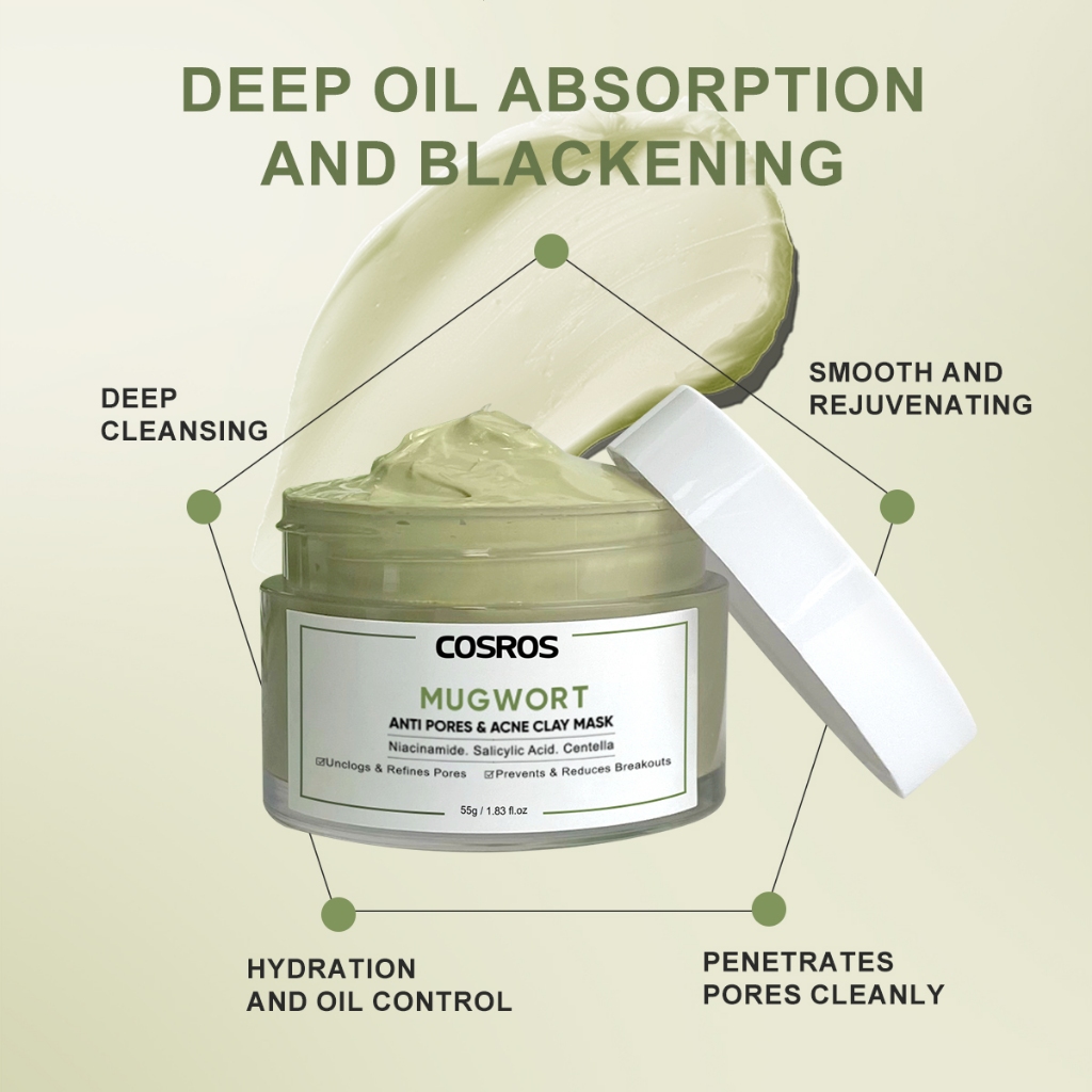 มาส์กโคลน Mugwort ต้านการอักเสบ กำจัดสิวหัวดำ, , รูขุมขนไม่อุดตัน, มาส์กทำความสะอาด, ควบคุมความมันและควบคุมสิว