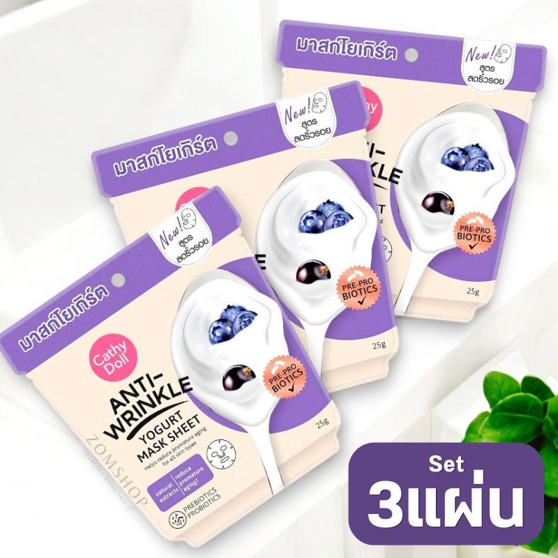 แผ่นมาส์กหน้า โยเกิร์ต【ม่วง สูตรองุ่น】Cathy Doll Anti - Wrinkle Yogurt Mask Sheet 25g
