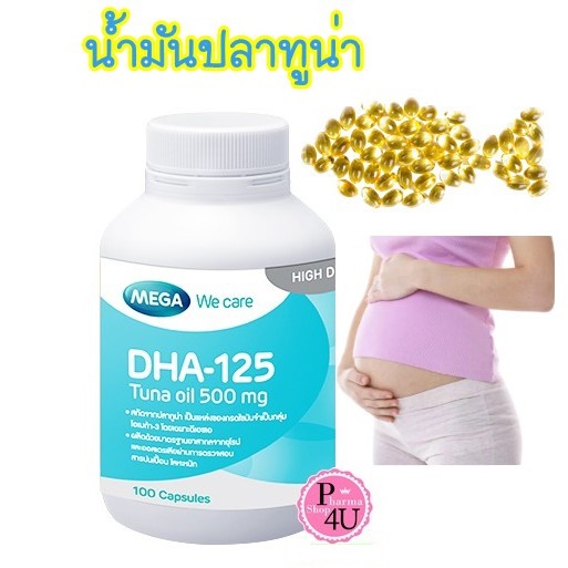 Mega We Care DHA - 125 Tuna Oil 500 Mg. ด้วยน้ำมันปลาทูน่า (100 แคปซูล)#1923