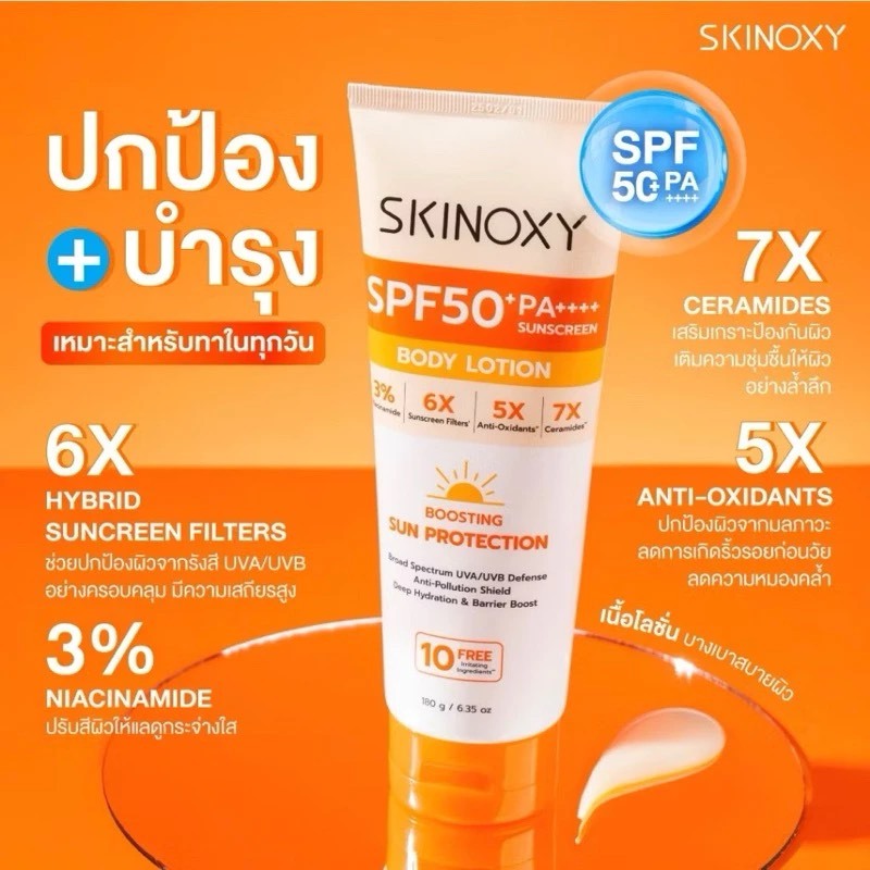 โลชั่นกันแดดทาตัว สกินอ๊อกซี่ Skinoxy Pro Sun Protection Body Lotion SPF50+PA++++ ( ซอง )