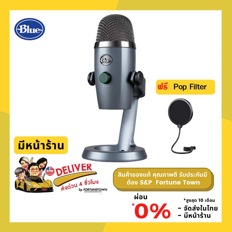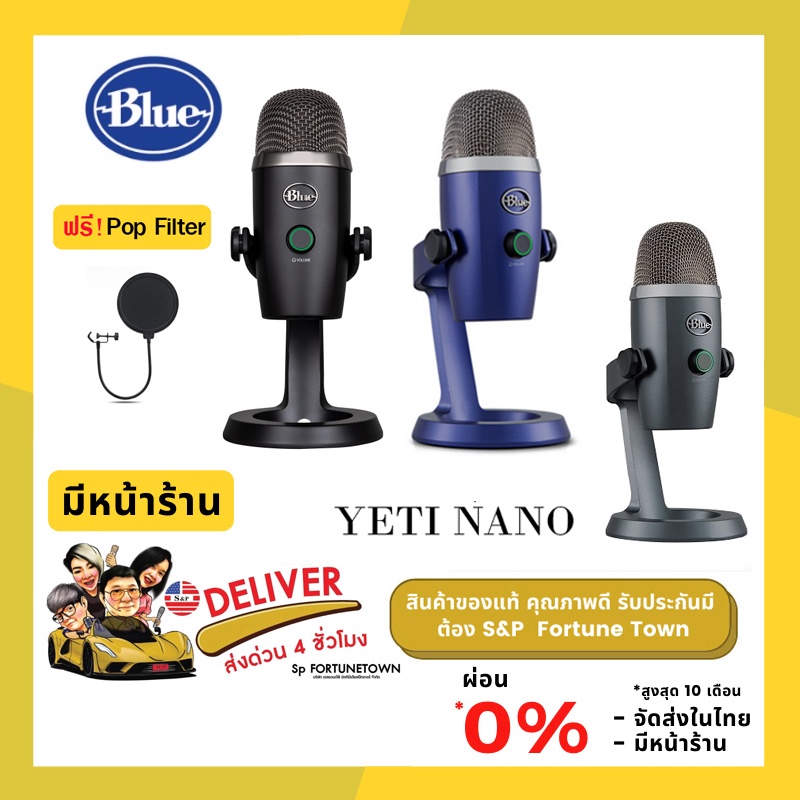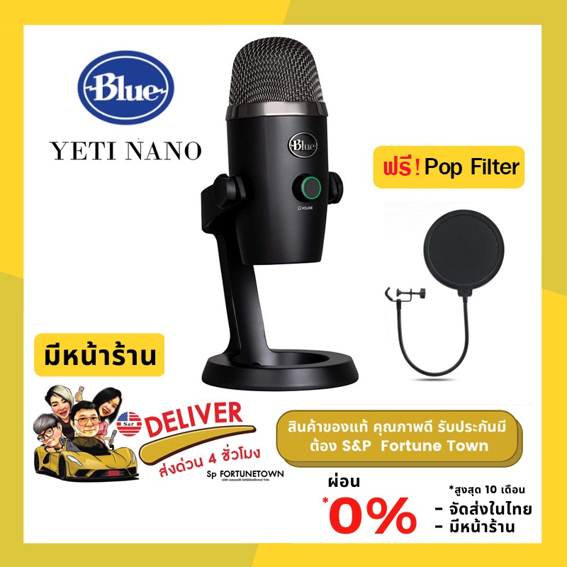 จัดส่งด่วนภายใน 4 ชั่วโมง BLUE Yeti Nano USB Mic คุณภาพเสียงที่น่าประทับใจคุณภาพสูง 24-bit ฟรี Pop Filter รับประกัน 1 ปี