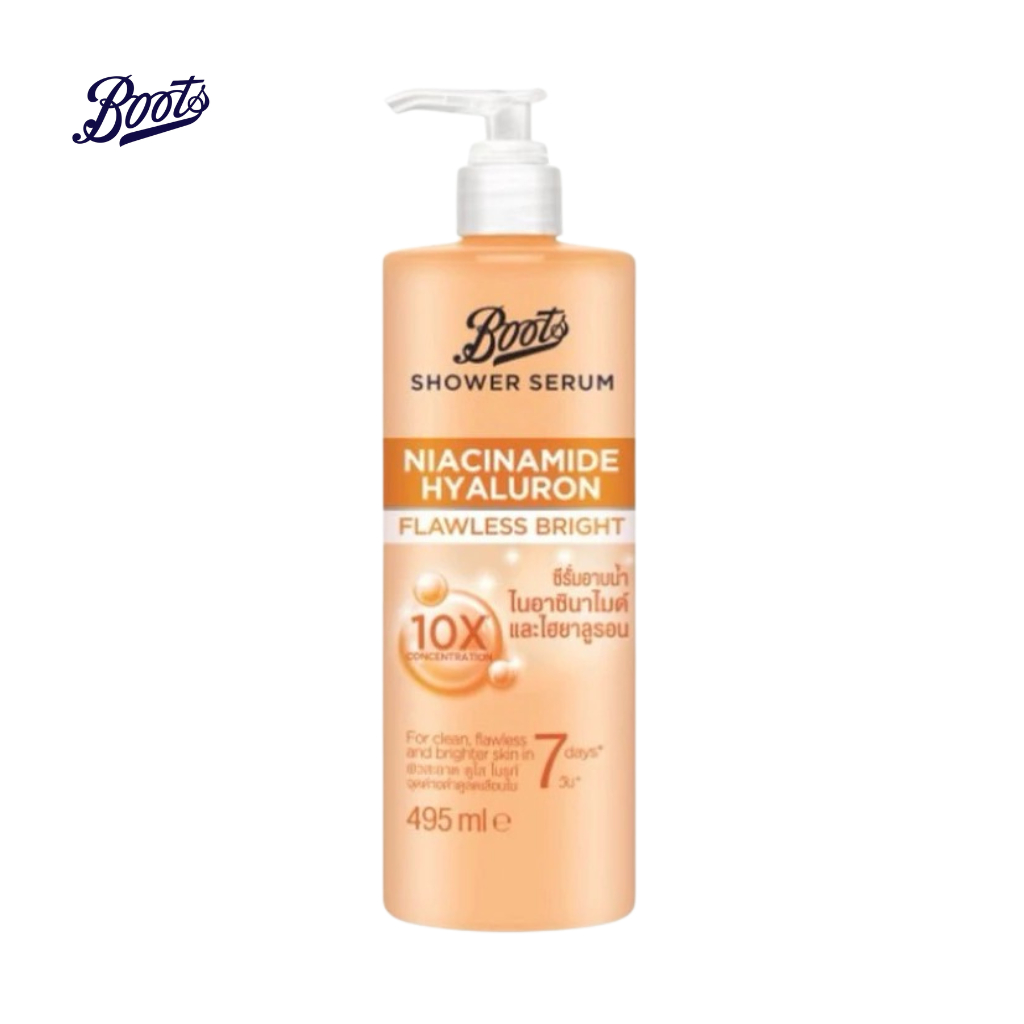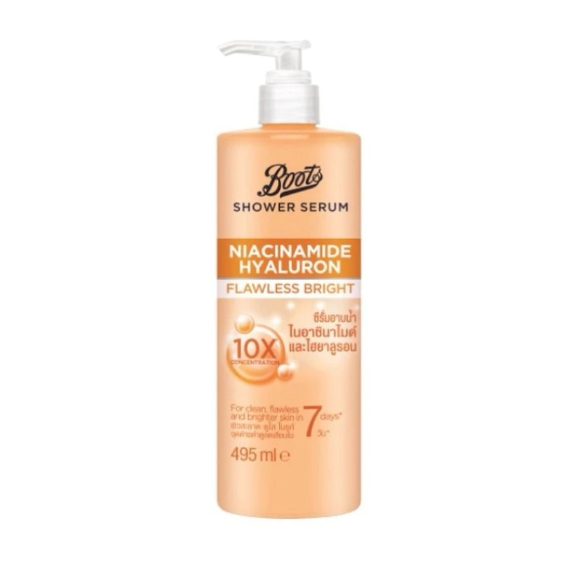 Boots บู๊ทส์ Shower serum Niacinamide Hyaluron Flawless Bright ชาวเวอร์ ซีรั่ม ไนอาซินาไมด์ ไฮยาลูรอน ฟลอเลส ไบรท์ 495มล