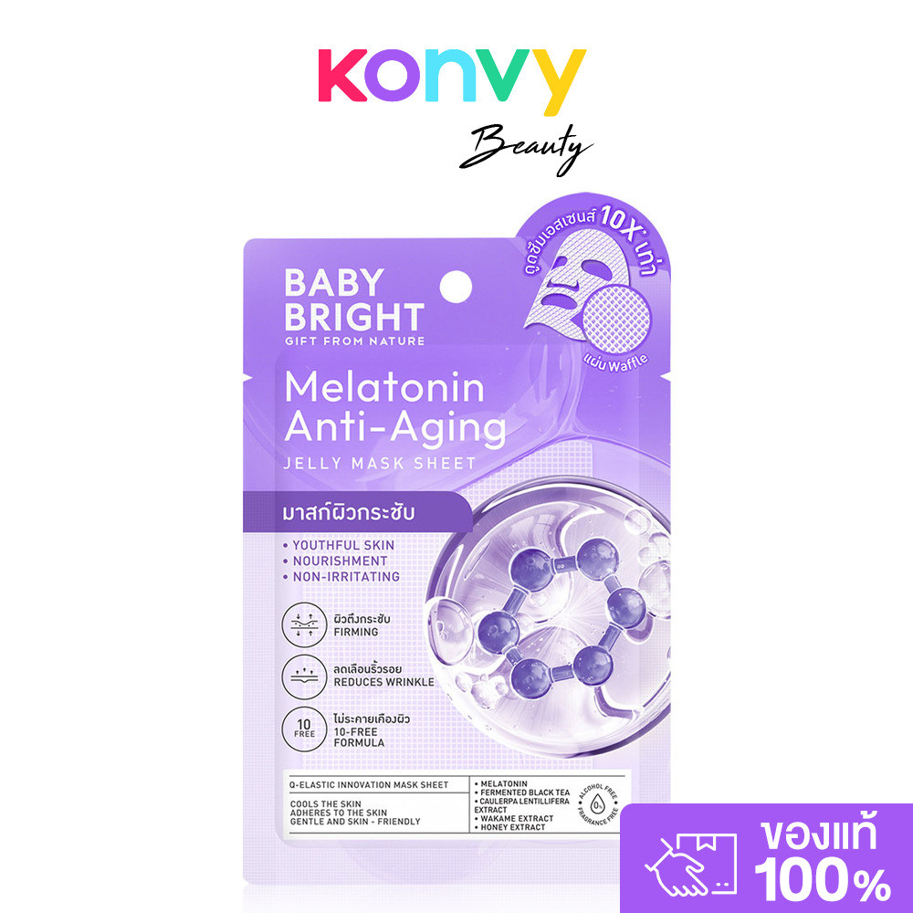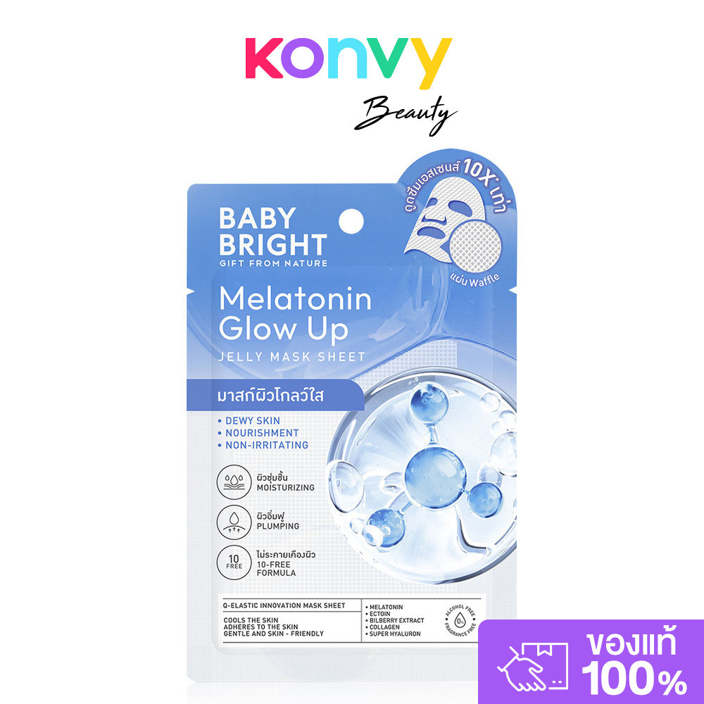 Baby Bright Melatonin Brightening Jelly Mask Sheet 25g มาสก์วาฟเฟิล เจลลี่เบบี้ไบร์ท เย็นสบาย ผิวไบร์ท.