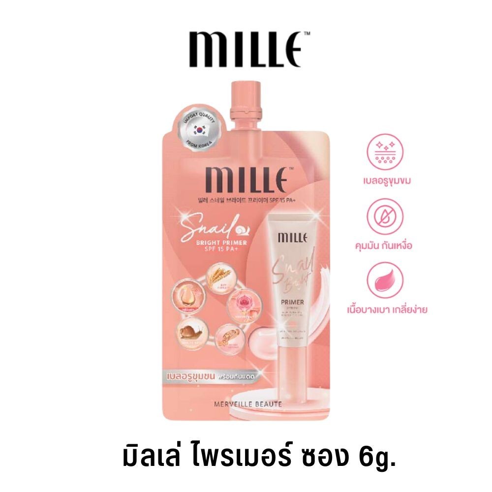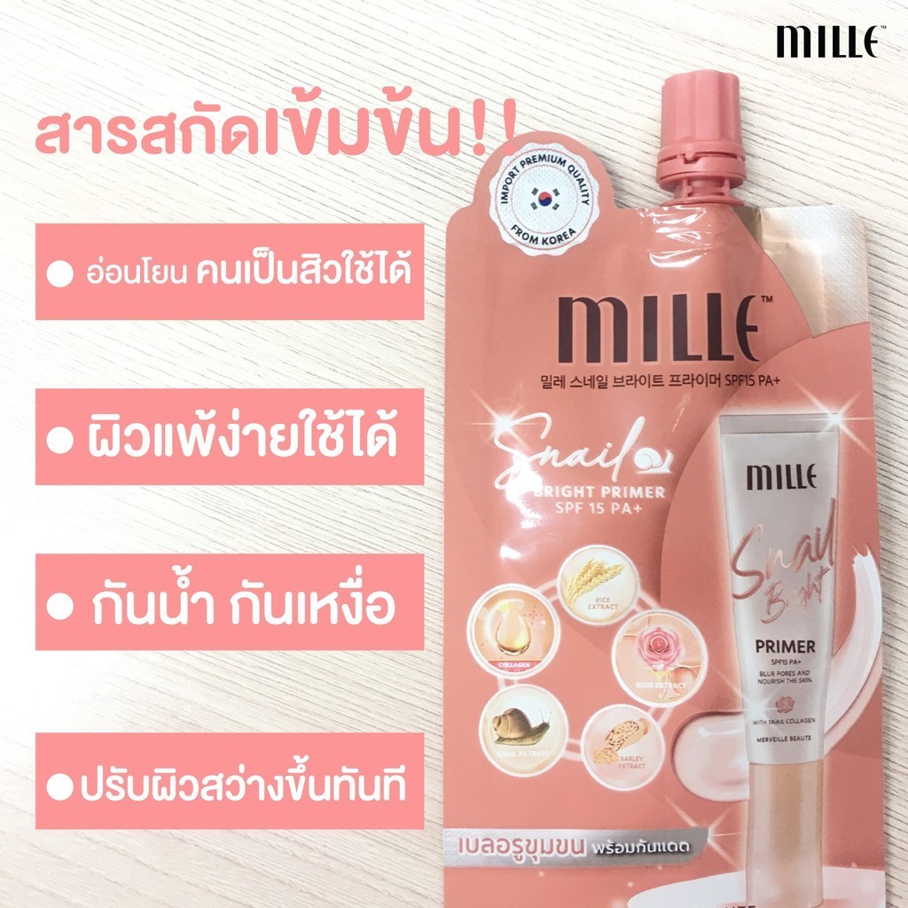 Mille Snail Bright Primer SPF15 PA+ มิลเล่ ไพรเมอร์ เบลอรูขุมขน คุมมัน กันแดด แบบซอง/แบบหลอด