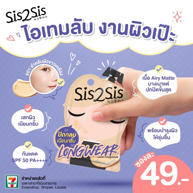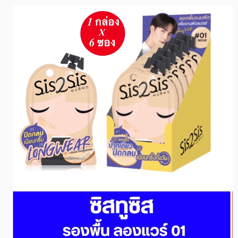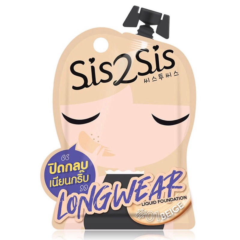 ( 1 กล่อง 6 ซอง ) ซิสทูซิส ลองแวร์ ลิควิก ฟาวเดชั่น ขนาด 5g #1 สีเบจ Sis2Sis Longwear Liquid Foundation 5gx6