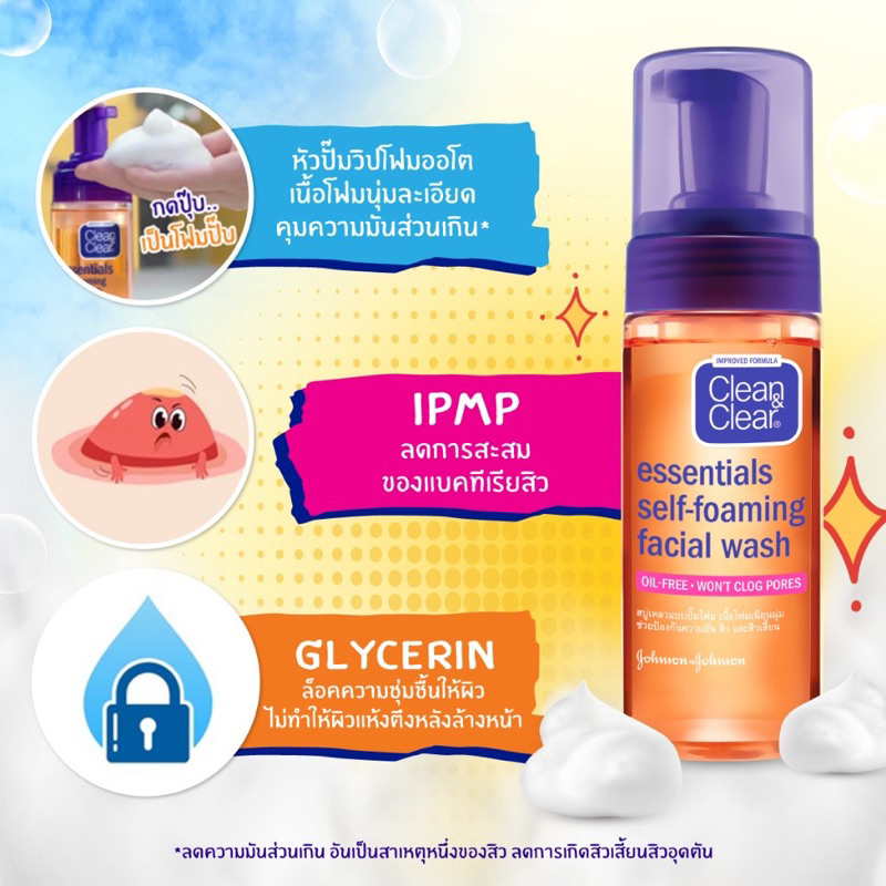 คลีน แอนด์ เคลียร์ เซลฟ์ โฟมมิ่ง เฟซ วอช150มล./เจลล้างหน้า100มล