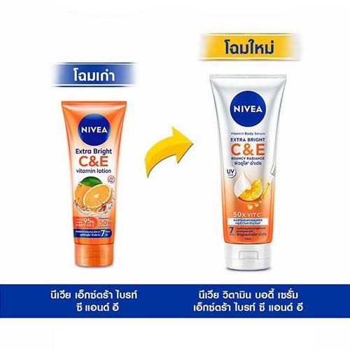 นีเวีย วิตมิน บอดี้ เซรั่ม เอ็กซ์ตร้า ไบรท์ ซี แอนด์ อี Nivea Body Serum Extra Bright C&E ผิวดูใส ฉ่ำเด้ง