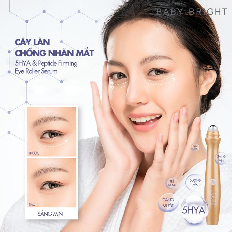 【สีม่วง】Baby Bright ลูกกลิ้งบำรุงใต้ตา【สูตรไฮยา】5HYA & Peptide Firming Eye Roller Serum 15ml.