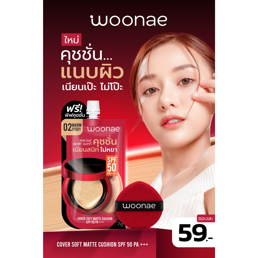 (1ซอง) Woonae Cover Soft Matte Cushion SPF 50 PA+++ วูเน่ คัฟเว่อ แมทท์ คุชชั่น เอสพีเอฟ 30 พีเอ +++