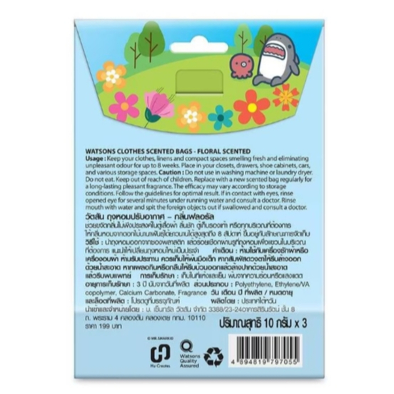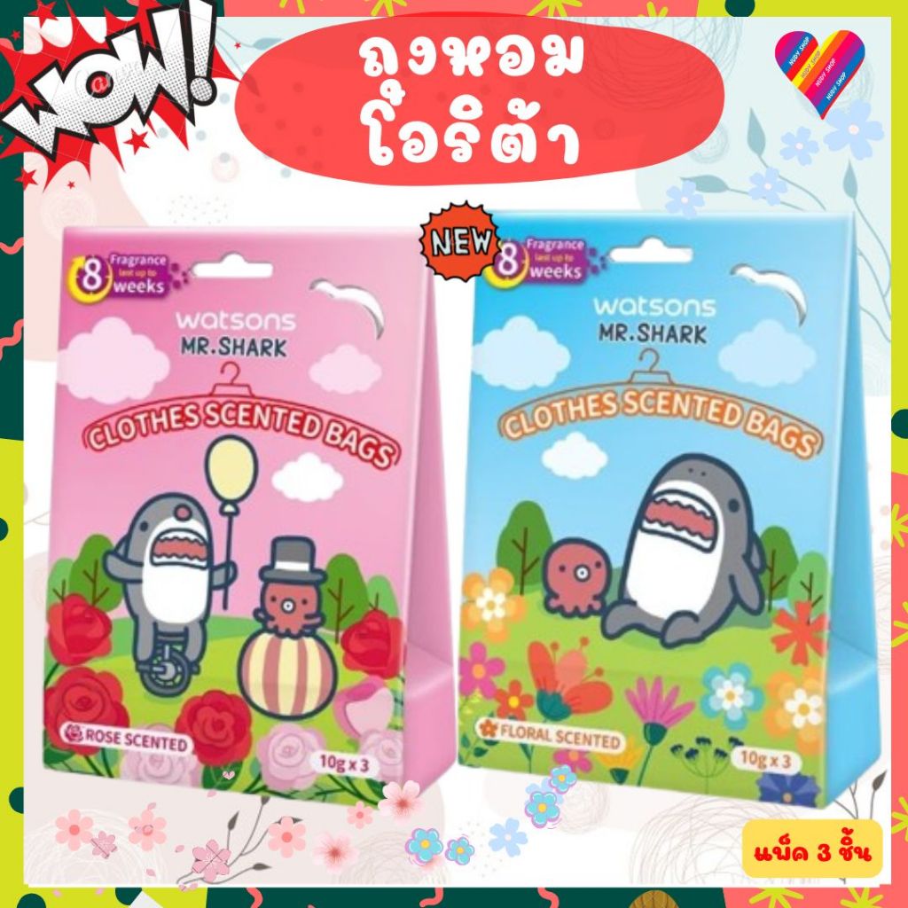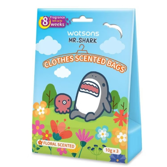 ส่งด่วน🌸 WATSONS วัตสัน ถุงหอม ปรับอากาศ Mr. Shark [แพ็ค 3 ถุง] ถุงหอม ใส่ ตู้เสื้อผ้า