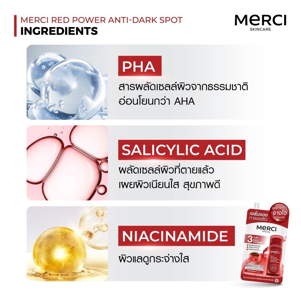 1 กล่อง 6 ซอง Merci Red Power Anti-Dark Serum เซรั่ม เมอร์ซี่ ลดรอยสิว รอยดำ รอยแดง ปริมาณ 7 ml.