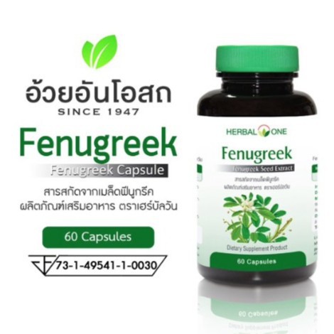 Herbal One Fenugreek Seed Extract ฟีนูกรีค ลูกชัด อ้วยอัน 60 Capsules #5527