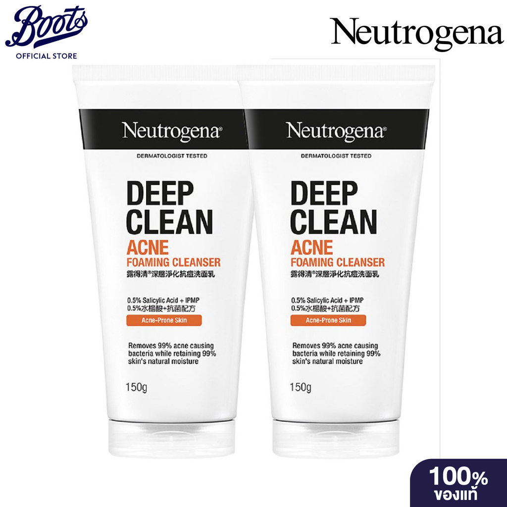 Neutrogena Facial Foam Deep Clean Acne Foaming Cleanser 150g (Twin Pack) นูโทรจีนา โฟมมิ่ง คลีนเซอร์ 150 กรัม (แพ็กคู่)