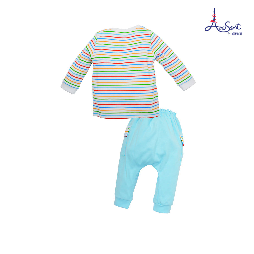 Amusant Cotton Bambooชุดเสื้อผ้าเด็กหญิงสำหรับ3เดือน-2ขวบ ลายรุ้งน่ารัก EH1G76