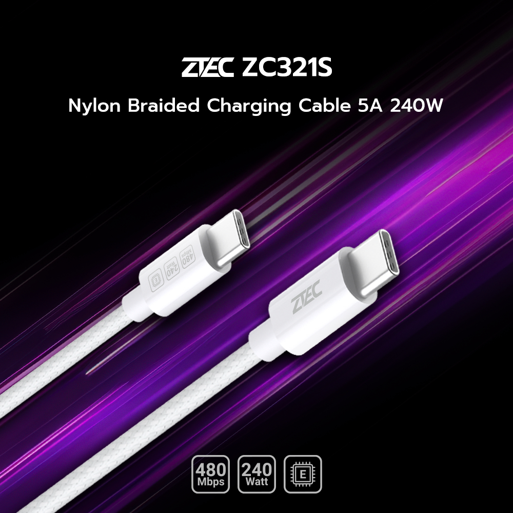 [ลดเหลือ 179] ZTEC ZC321S / ZC322S สายชาร์จเร็ว USB-C to USB-C 5A 240W รองรับเทคโนโลยี PD และ QC วัสดุสายถัก -24M