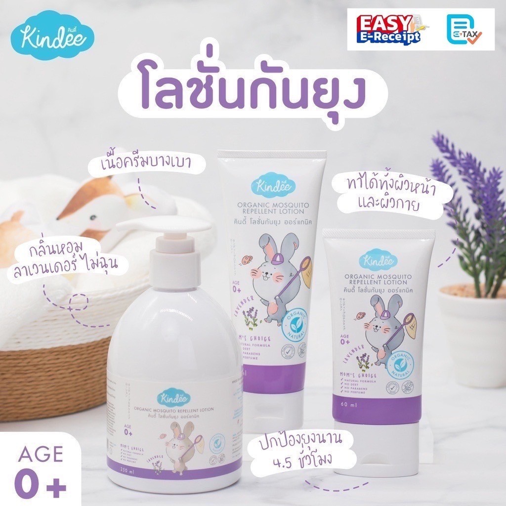 Kindee คินดี้ โลชั่นกันยุง ออร์แกนิค ใช้ได้ตั้งแต่แรกเกิด กลิ่นลาเวนเดอร์
