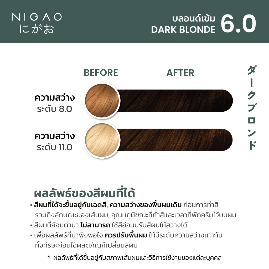 [ฟรี Developer] NIGAO Hair Color Natural 6.0 Dark Blonde | นิกาโอะ ครีมเปลี่ยนสีผม สีย้อมผม สีบลอนด์เข้ม 100 mL