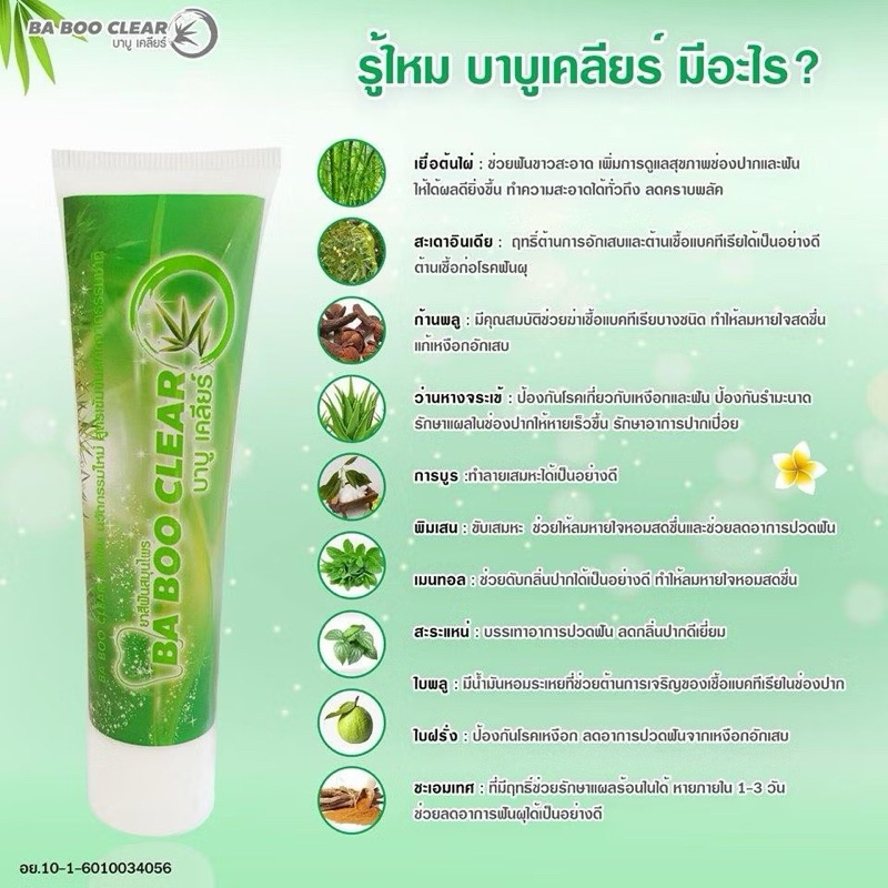 *บาบูเคลียร์ ยาสีฟันสมุนไพร Baboo Clear Herbal Toothpaste