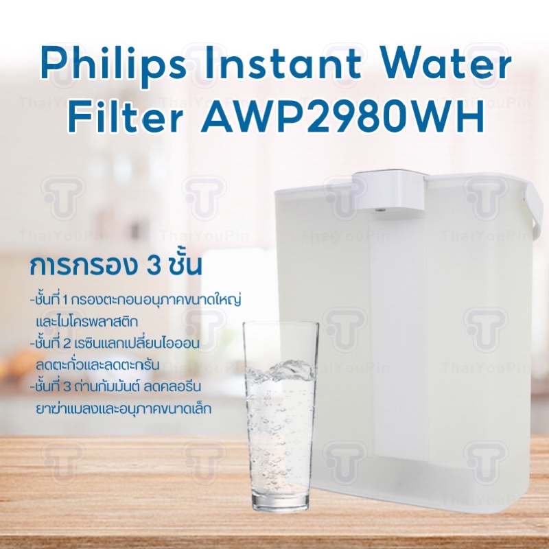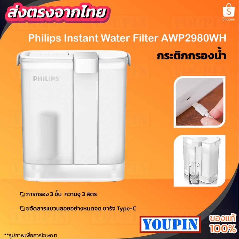 [รหัสคูปอง YOUPHPP30]Philips water AWP2980WH เหยือกกรองน้ำ กรองน้ําดื่ม เหยือกกรองน้ำดื่ม เหยือกกดกรองน้ำ แบบชาร์จ