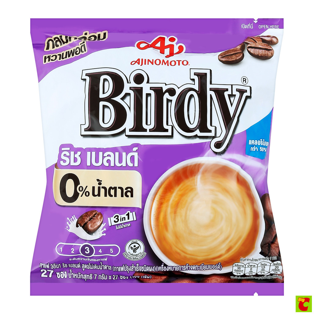 เบอร์ดี้ 3อิน1 ริชเบลนด์ กาแฟปรุงสำเร็จชนิดผง สูตรไม่เติมน้ำตาล 7 ก. แพ็ค 27 ซอง