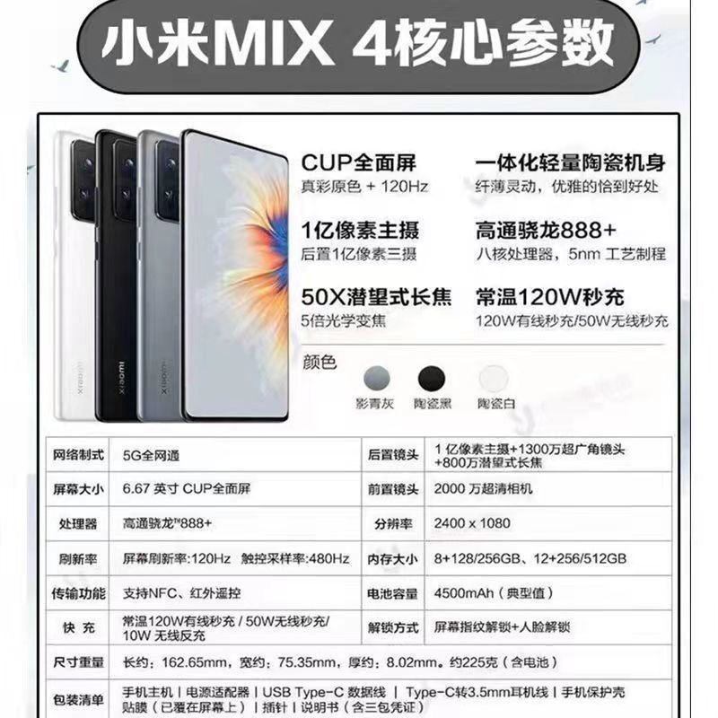 Xiaomi Mi Mix4 Snapdragon 888 100ล้านพิกเซลกล้องหลักถ่ายวิดีโอนักเรียน