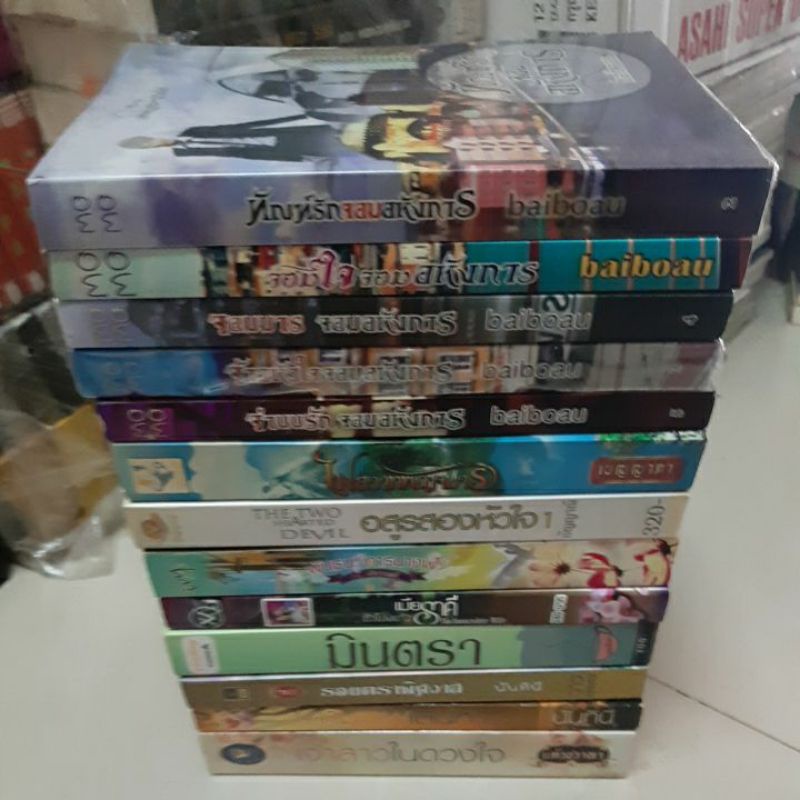 หนังสือนิยาย จ้าวหัวใจเถื่อน,ภรรยาอสูร,คำสาปรักในรอยทราย,ozma บทเพลง,นันทินี,เบญญาภา,บ่วงบรรจถรณ์,เวลัญ,มัญชุดา,กันตินา