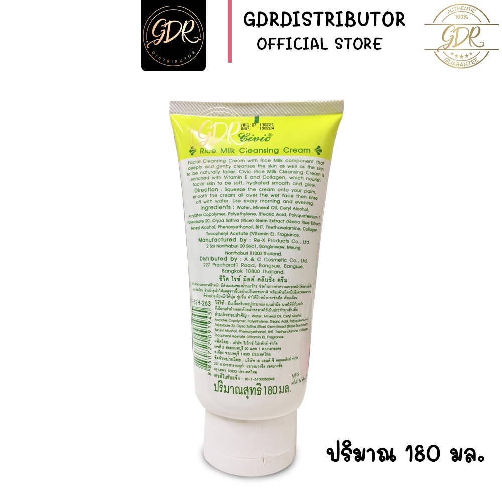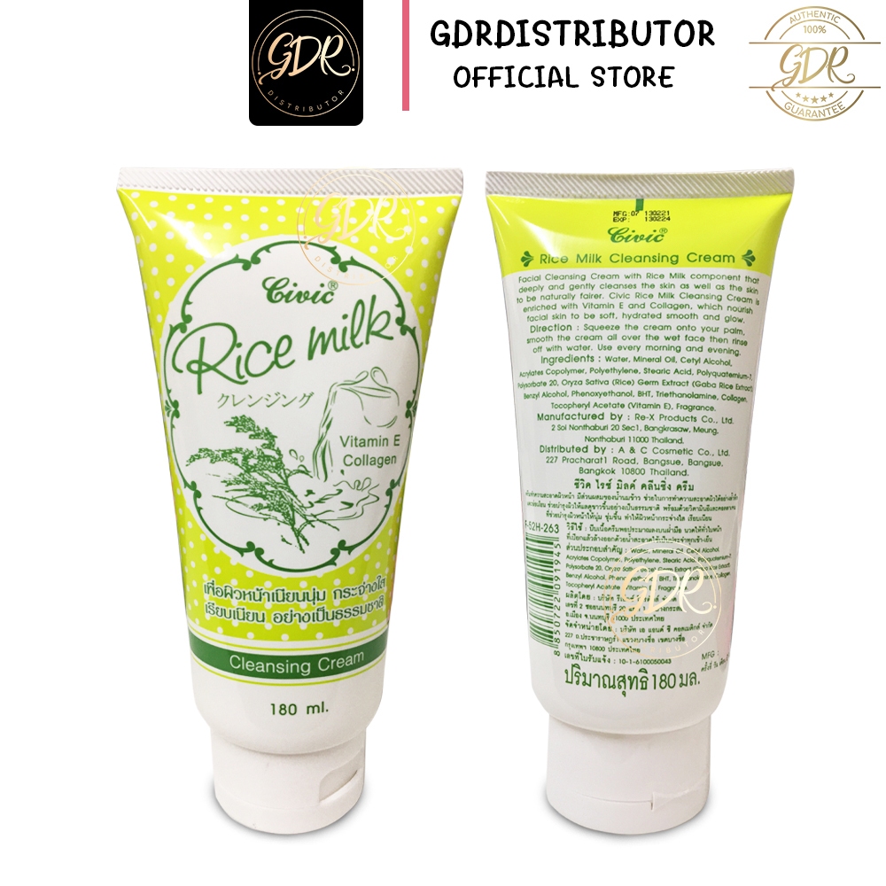 CIVIC Rice ครีมล้างหน้า โฟมล้างหน้า คลีนซิ่ง น้ำนมข้าว ผสม วิตามินอี คอลาเจน 180 มล.