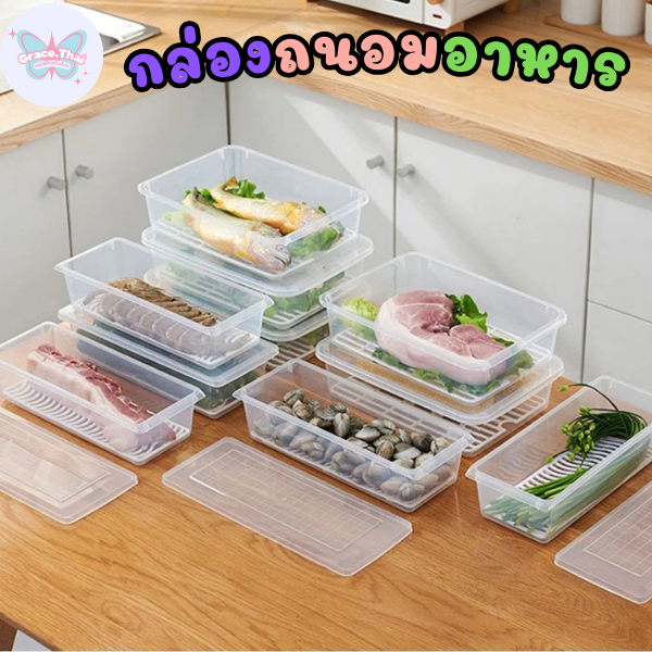 🍒Grace Thai🍒 กล่องถนอมอาหาร กล่องเก็บอาหาร เก็บอาหารในตู้เย็น มีถาดระบาย พร้อมฝาปิด