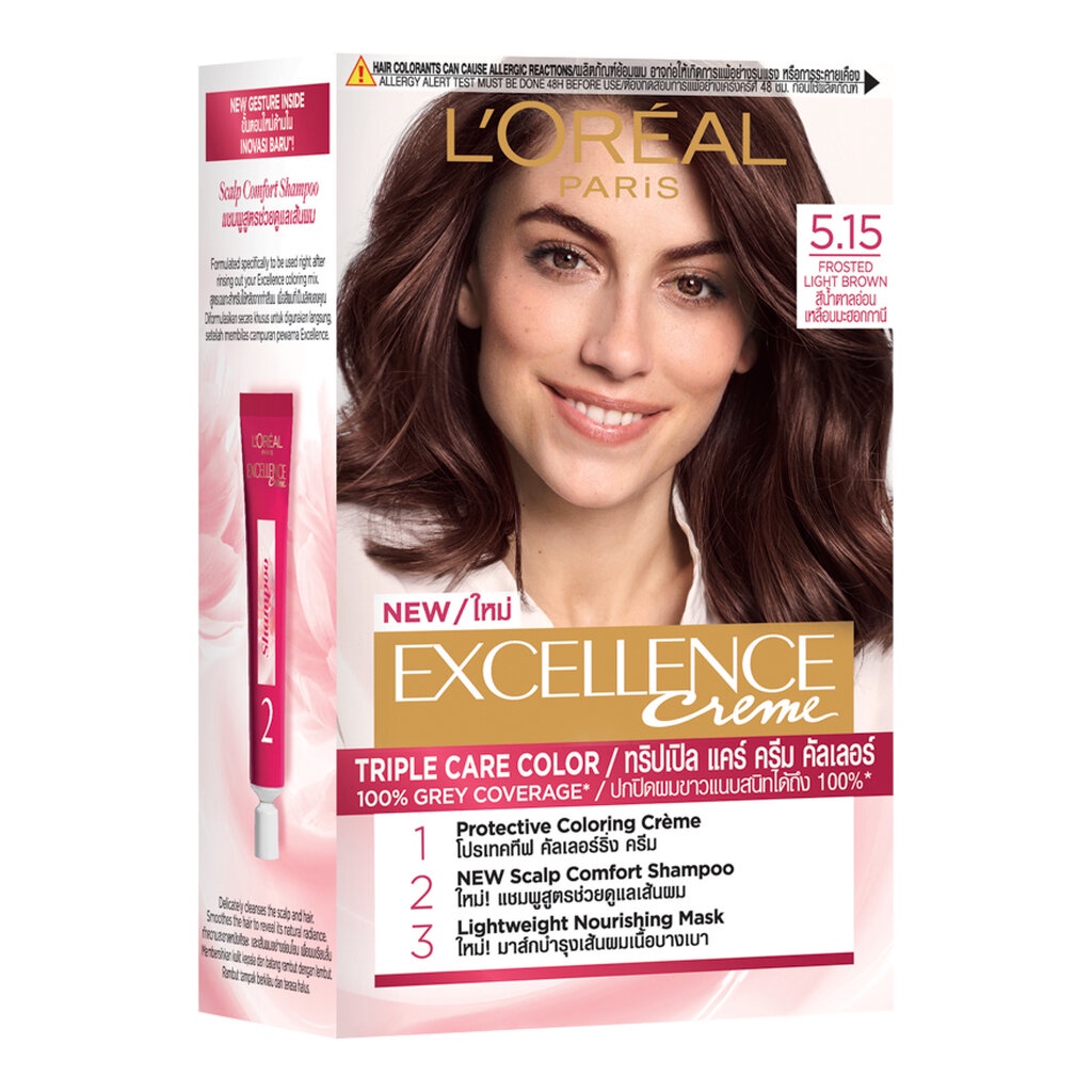 L'Oreal ลอรีอัล ปารีส เอ็กซ์เซลเลนซ์ ครีม เบอร์ 5.15 สีน้ำตาลอ่อนเหลือบมะฮอกกานี