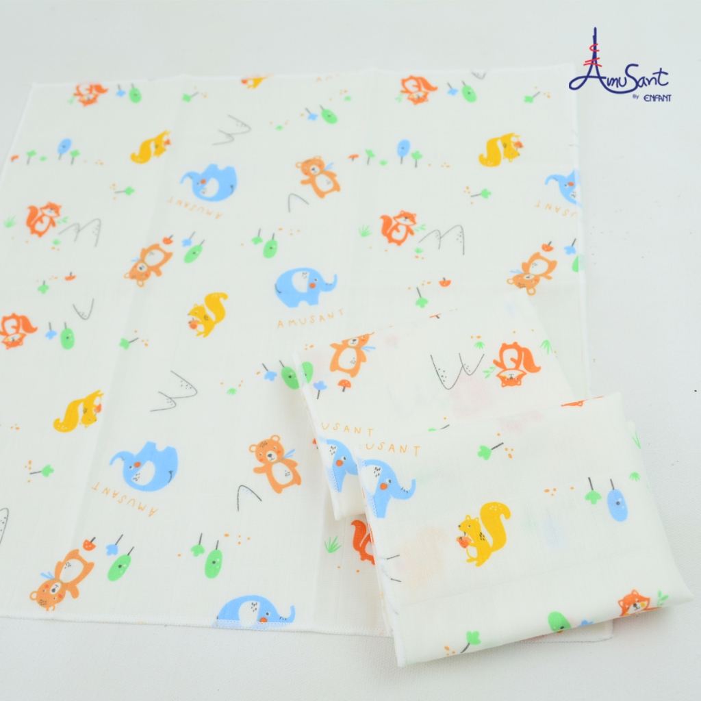 Amusant ผ้าเช็ดหน้าสาลูแพ็ค3ผืน Cotton bambooขนาด13x13นิ้ว