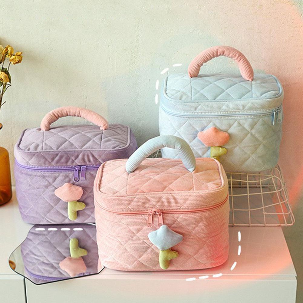 กระเป๋าเครื่องสําอาง แบบพกพา ขนาดใหญ่ จุของได้เยอะ ลายดอกไม้น่ารัก Makeup Pouch Cosmetic Bag