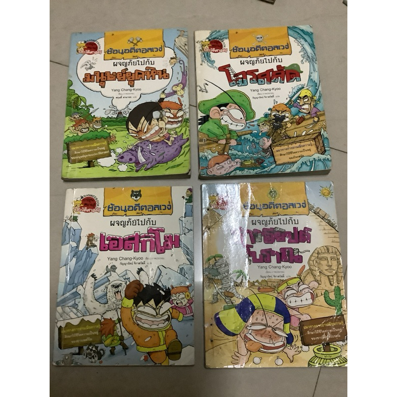 2 หนังสือการ์ตูนความรู้ ย้อนอดีตอลเวง ผจญภัยไปกับโจรสลัด,ผจญภัยไปกับมนุษย์ยุคหิน,ผจญภัยไปกับเอสกิโม,ผจญภัยไปกับชาวอียิป