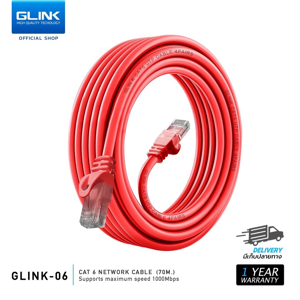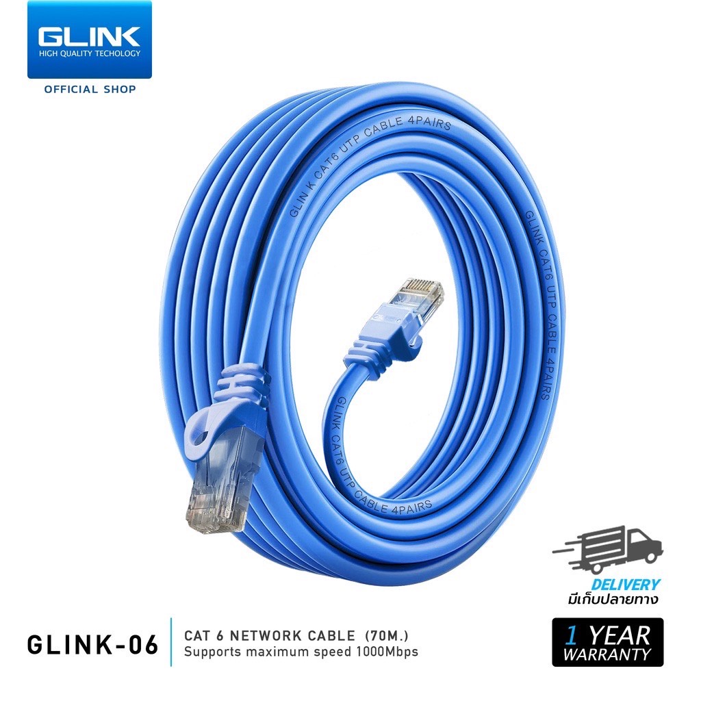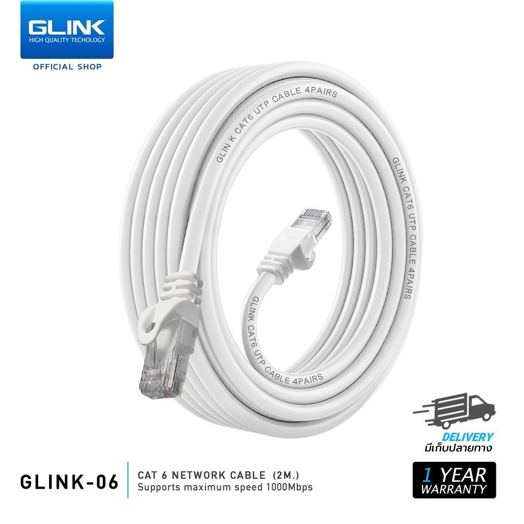 GLINK รุ่น GLINK06 สายแลน 2m~15m Cat6 UTP Gigabit สายเครือข่าย RJ45 สายแลน สำหรับ แล็ปท็อป, เราเตอร์ สินค้าแท้ 100%