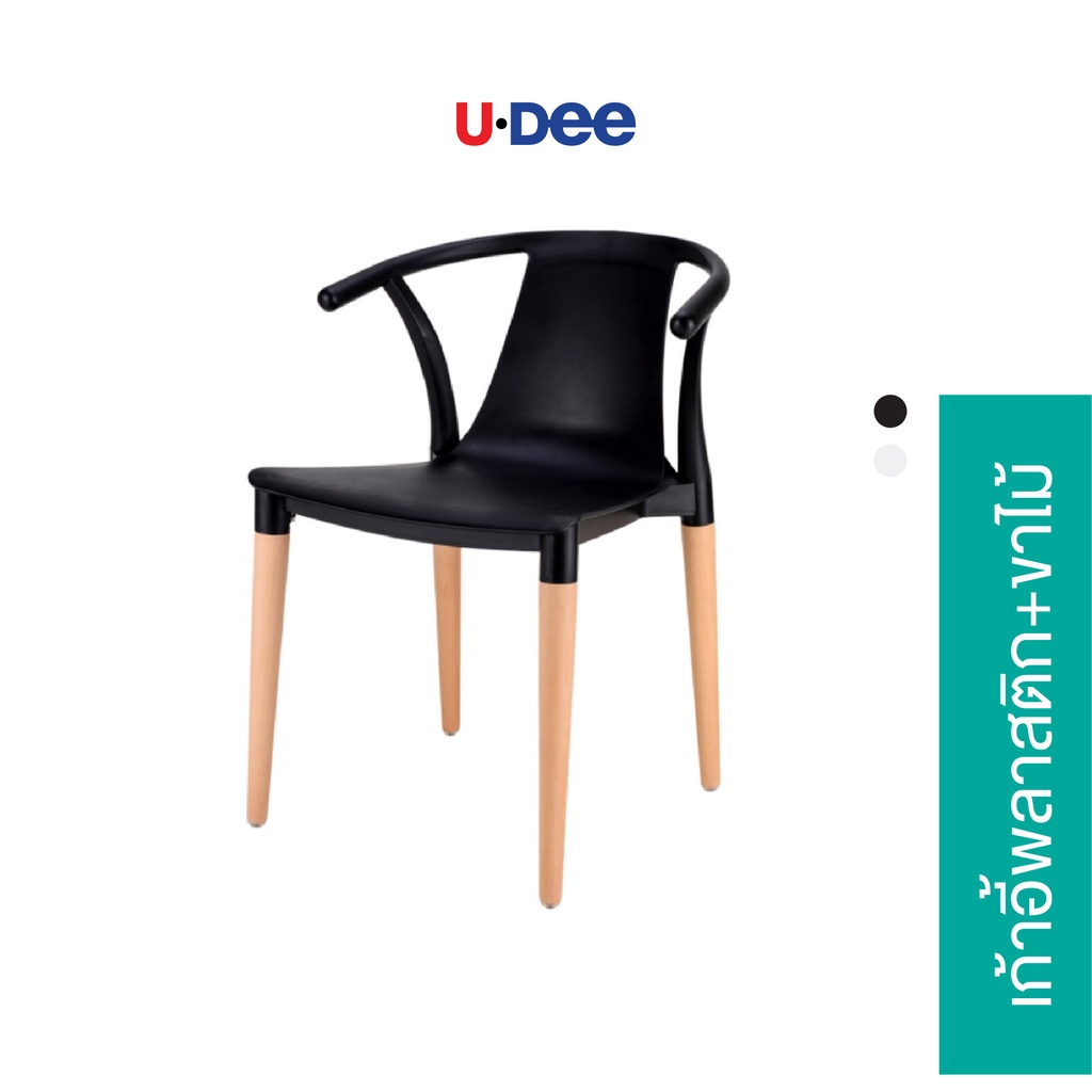 U.Dee: เก้าอี้ Modern รุ่น PP-666 ขาไม้บีชเนื้อแข็ง สีธรรมชาติ พนักพิงวัสดุพลาสติก PP คุณภาพสูง แข็งแรง!!