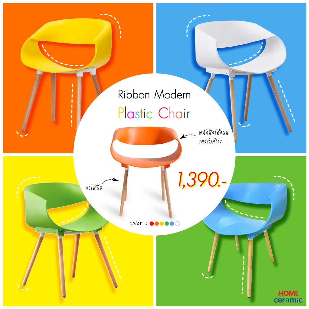 U.Dee: เก้าอี้ Plastic รุ่น PP-682 พนักพิงกว้างใหญ่ นั่งสบายไม่อึดอัด ดีไซน์สวย สีสันสดใส ใช้งานได้หลากหลาย