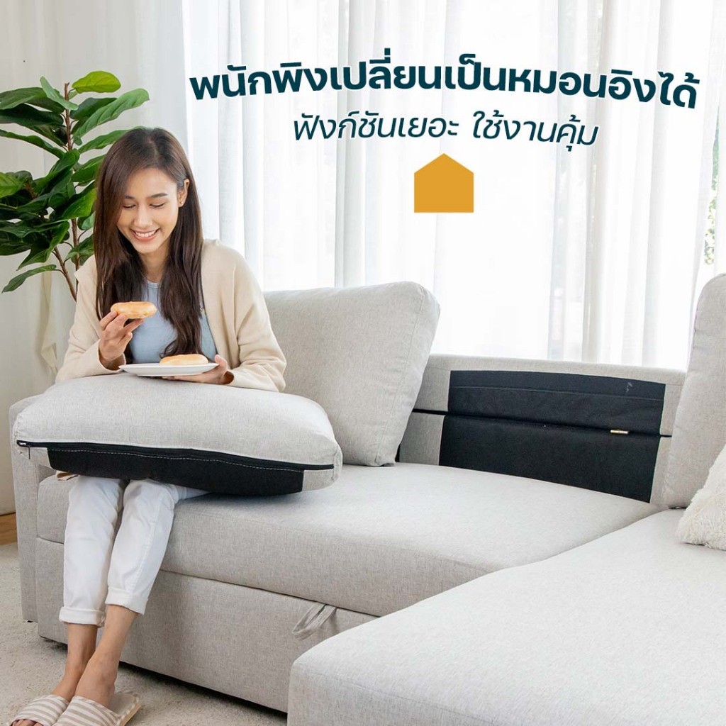 HomeHuk โฮมฮัก โซฟาผ้าปรับนอน L-Shape รุ่นเมดิสัน/รุ่นเคียร่า