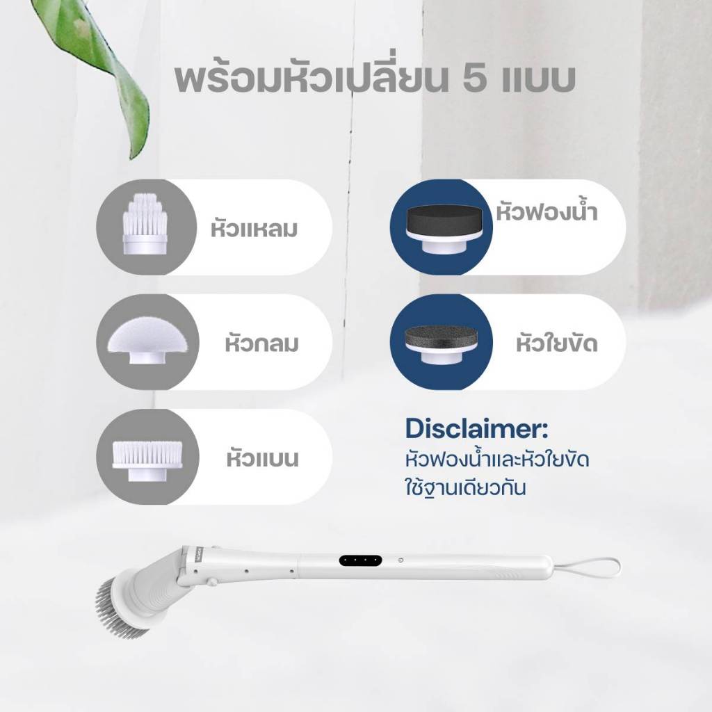 Homemi แปรงทำความสะอาดไฟฟ้า รุ่น Lite แถมหัวเปลี่ยน 5 แบบ ขัดห้องน้ำ ล้างรถ เช็ดกระจก (HM0096-P-WH)