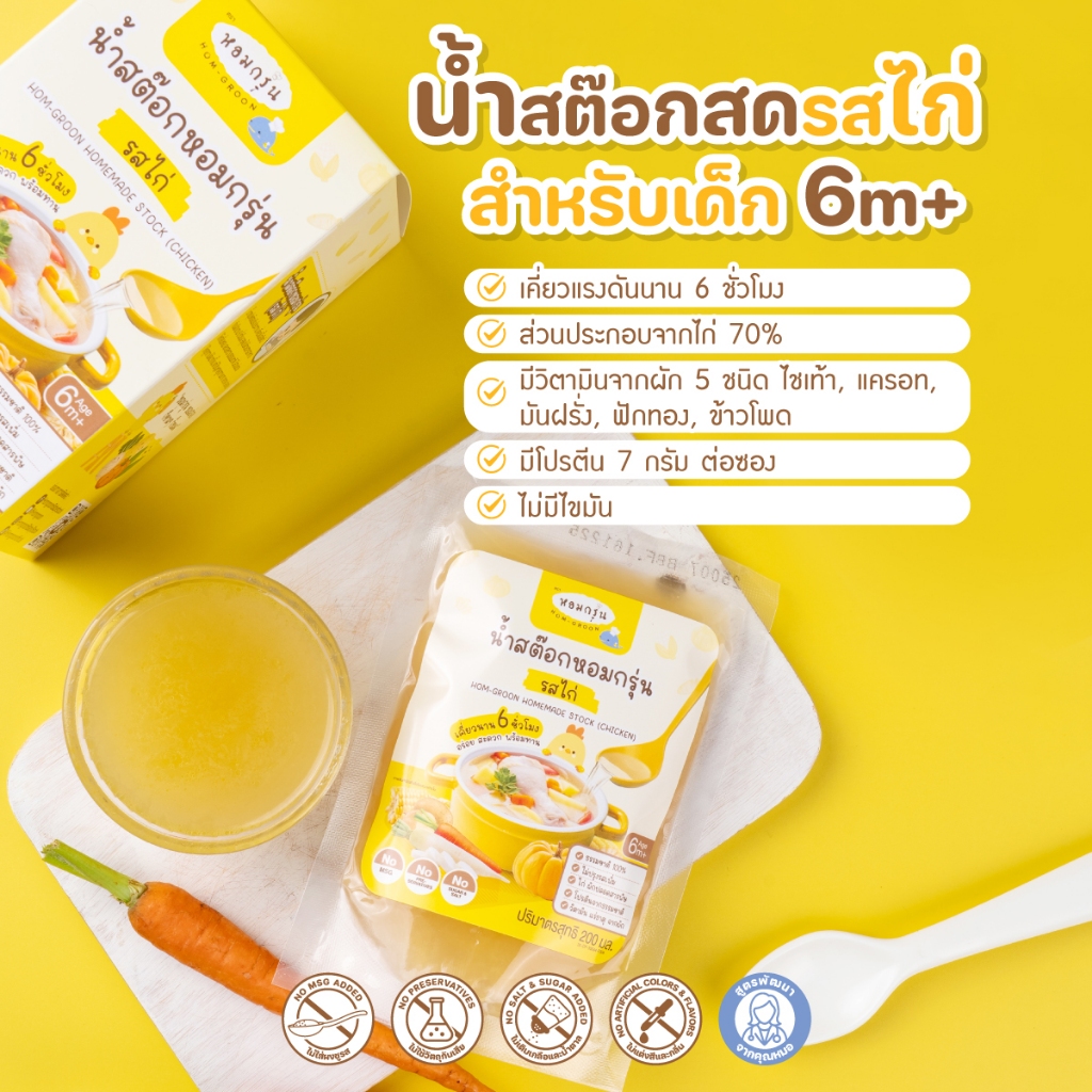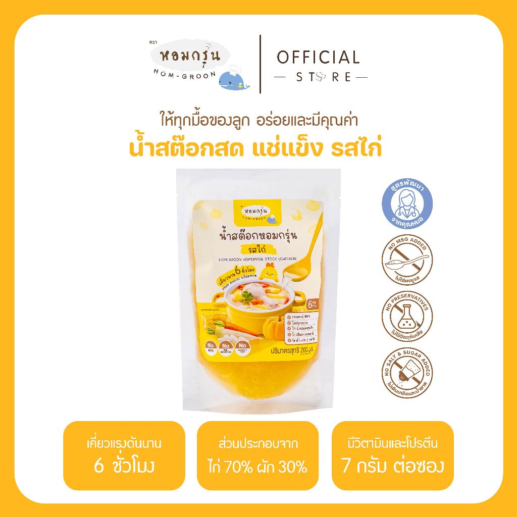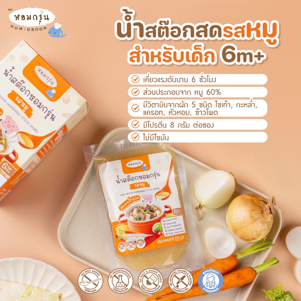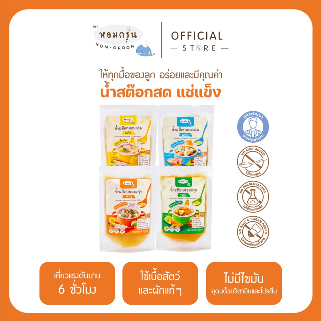 หอมกรุ่น - น้ำสต็อกสด สำหรับเด็ก 6 เดือนขึ้นไป แก้ปัญหาลูกกินยาก โภชนาการครบ ไม่ใส่สารกันเสีย ไม่ใส่ผงชูรส ไม่ใส่เกลือ