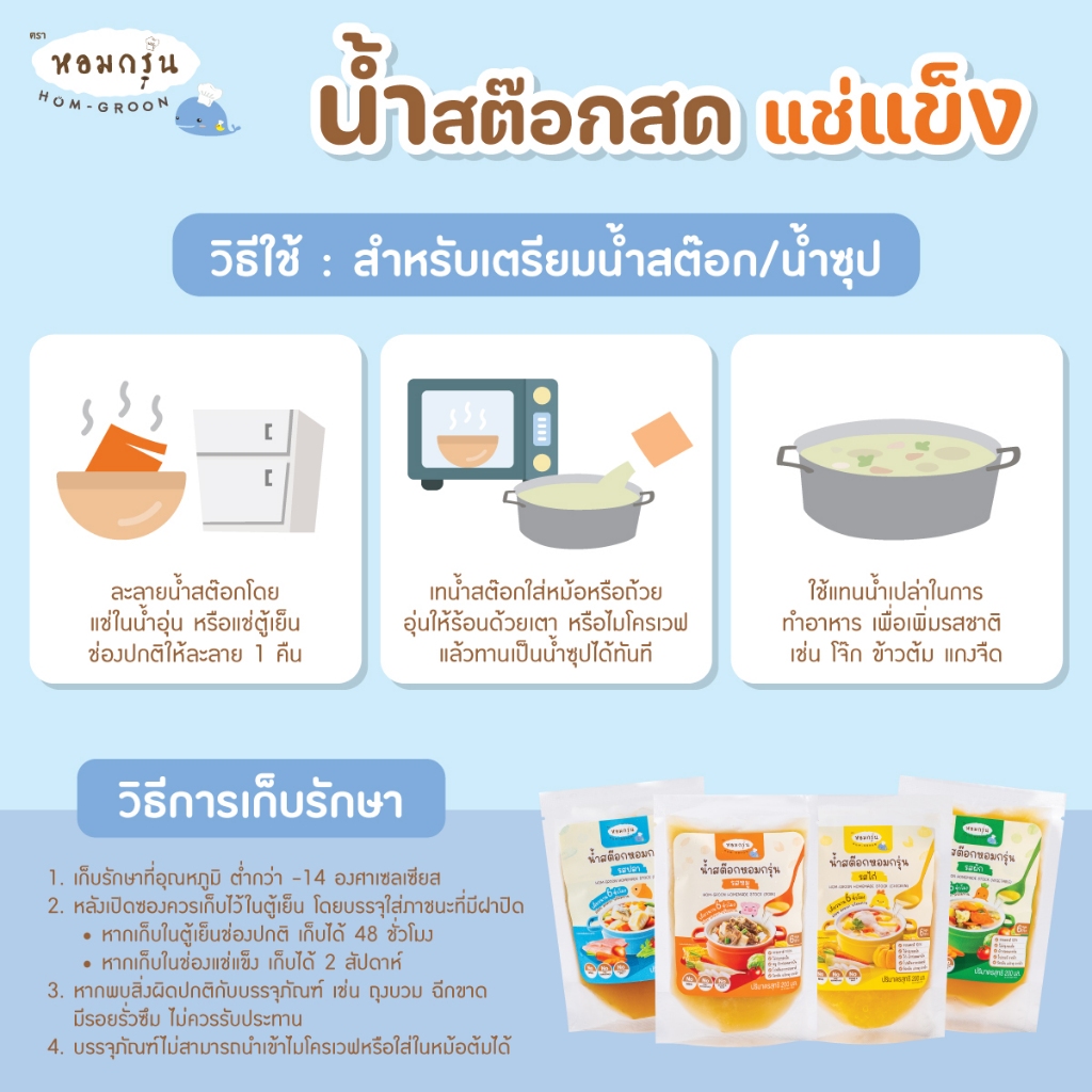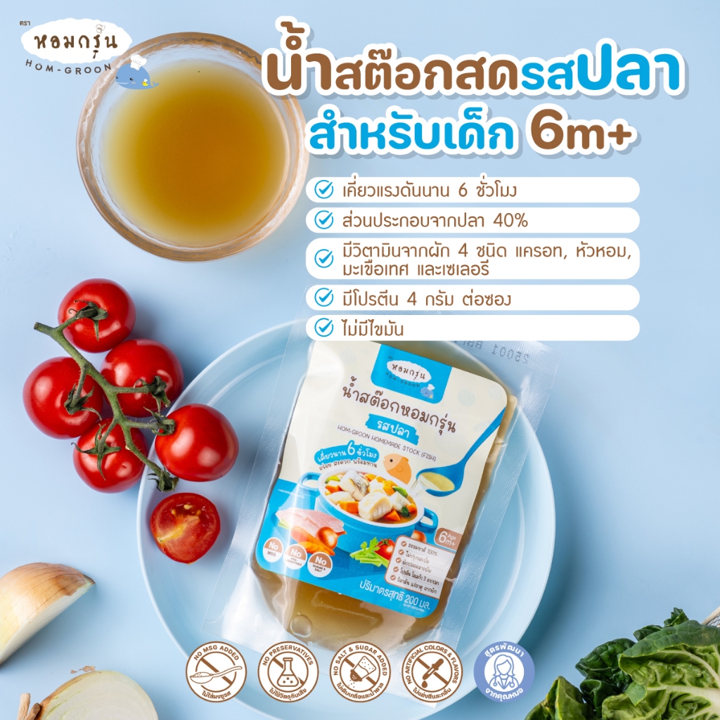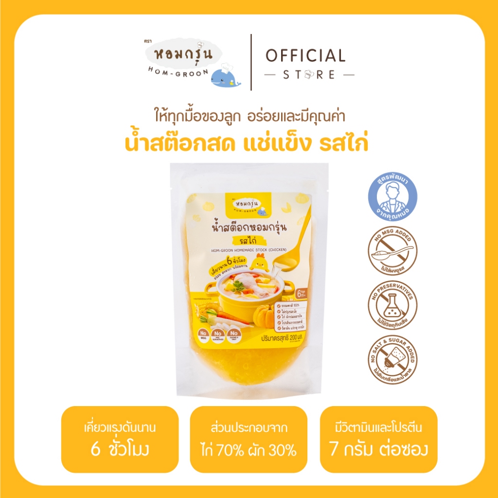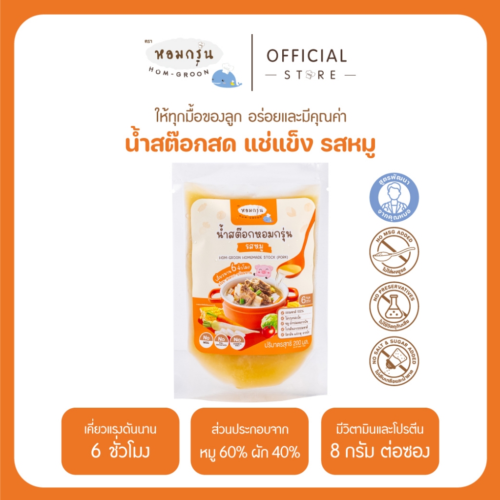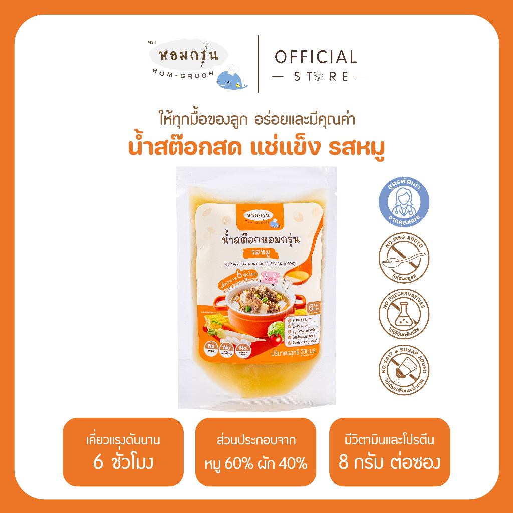 หอมกรุ่น - น้ำสต็อกสด สำหรับเด็ก 6 เดือนขึ้นไป แก้ปัญหาลูกกินยาก โภชนาการครบ ไม่ใส่สารกันเสีย ไม่ใส่ผงชูรส ไม่ใส่เกลือ