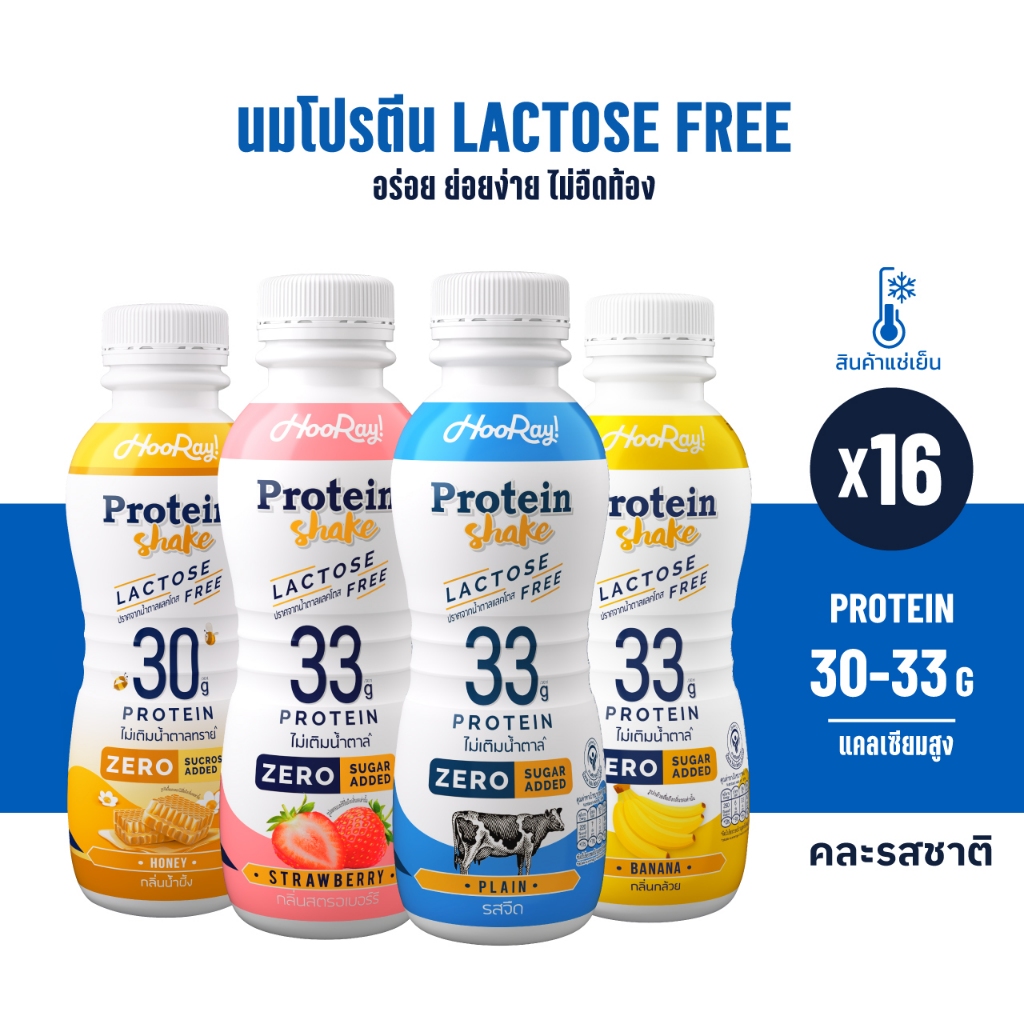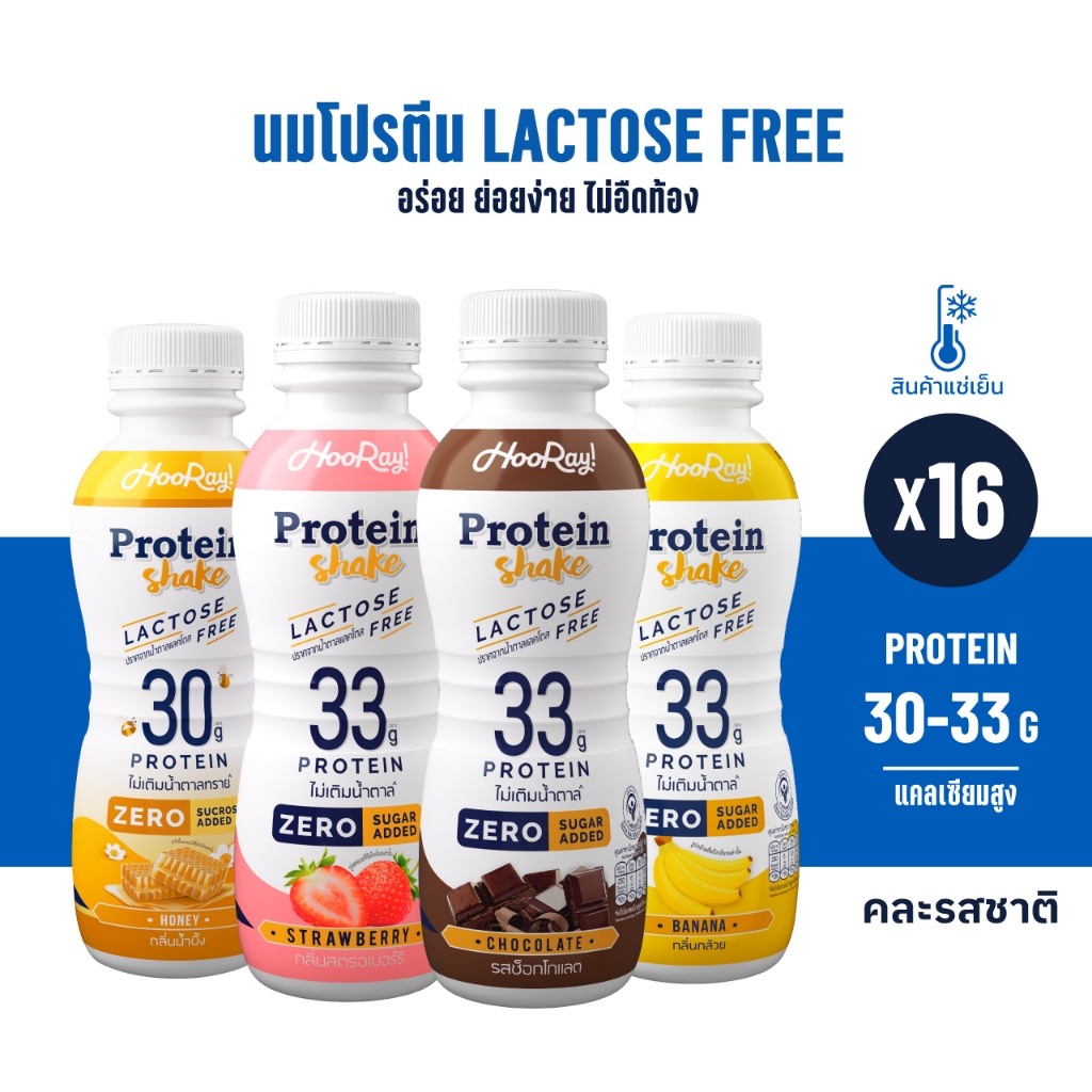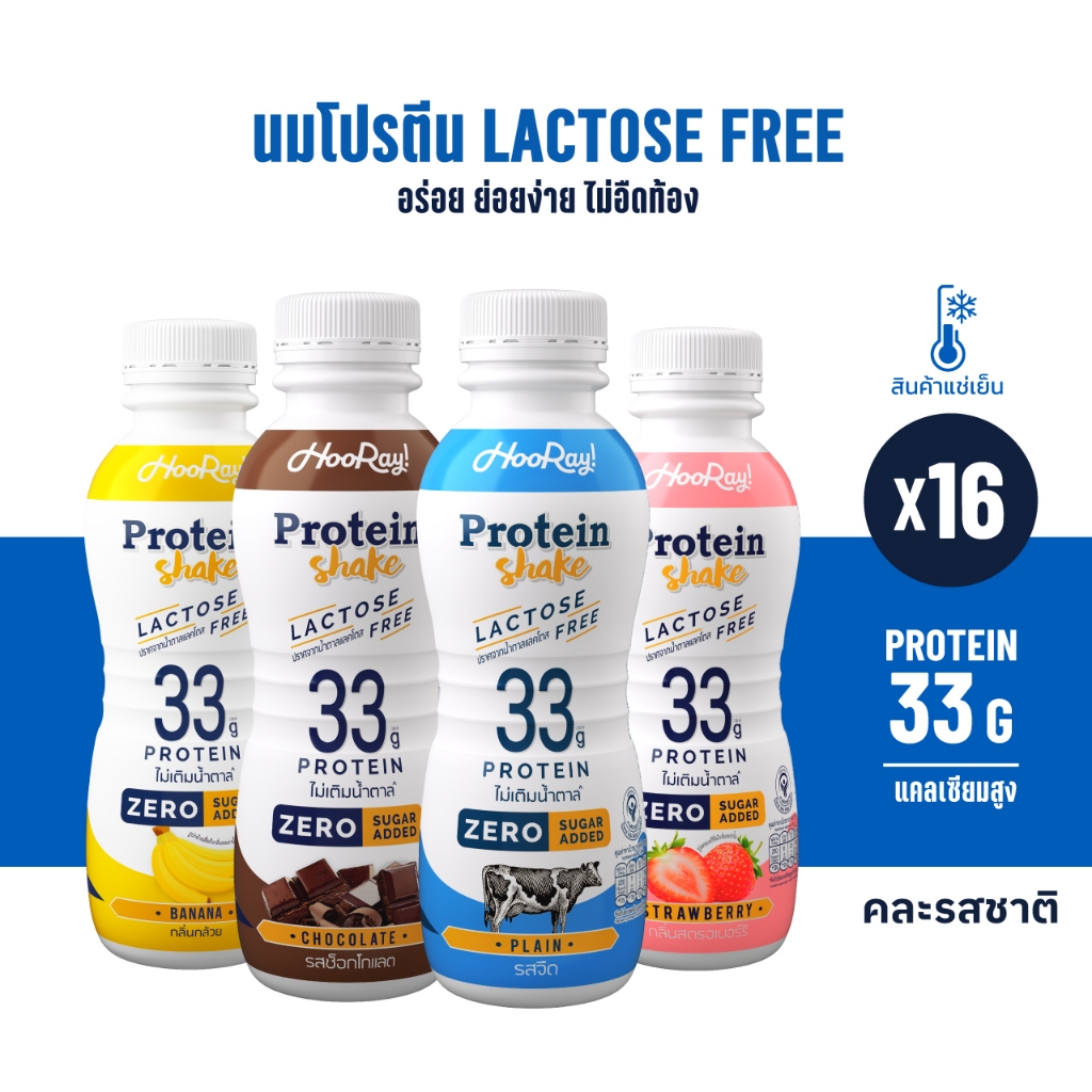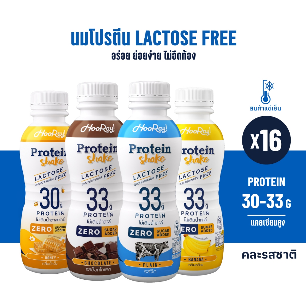 Hooray! Protein Shake Lactose Free นมโปรตีนสูตรเ วย์ Pack 16 ขวด รอบส่งวันที่ 12-14 [BBF28/03/2026]