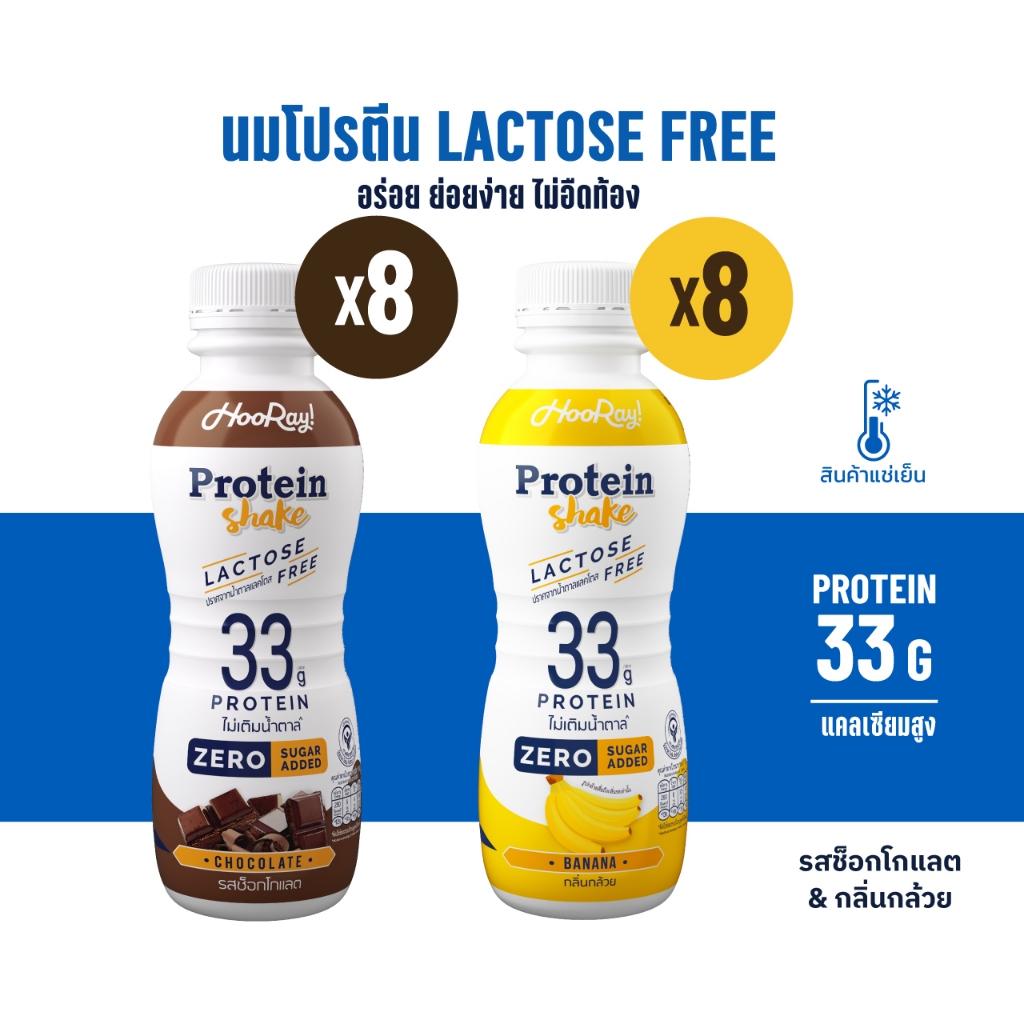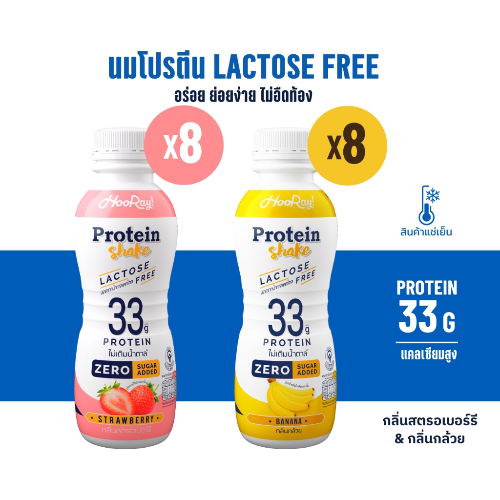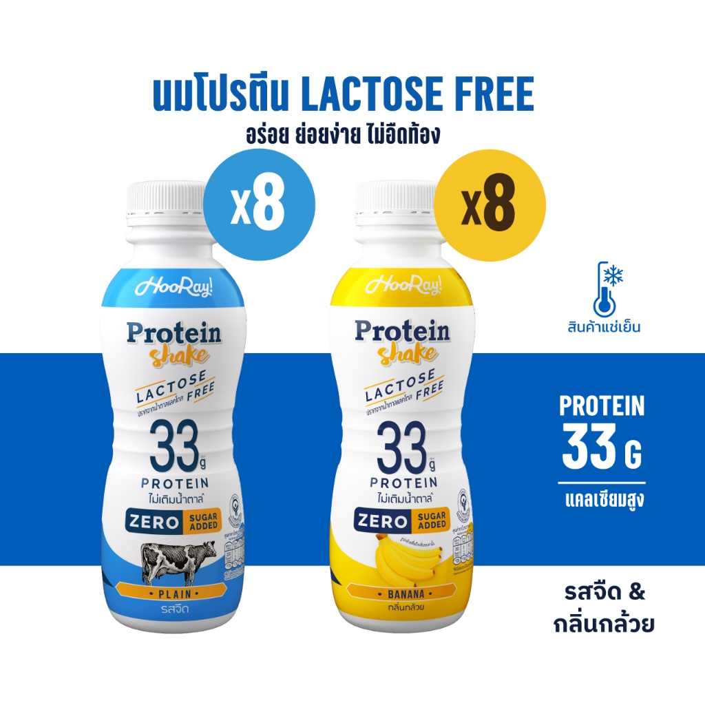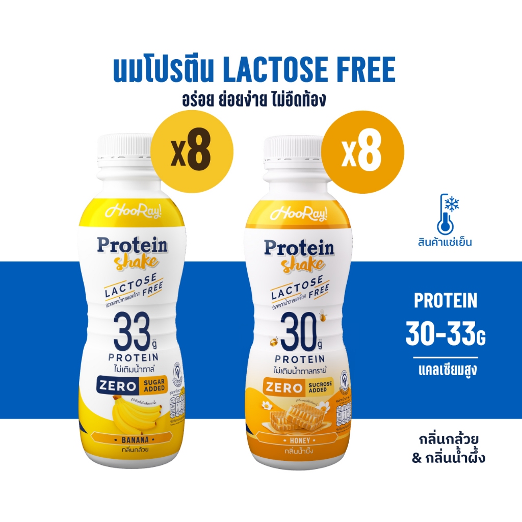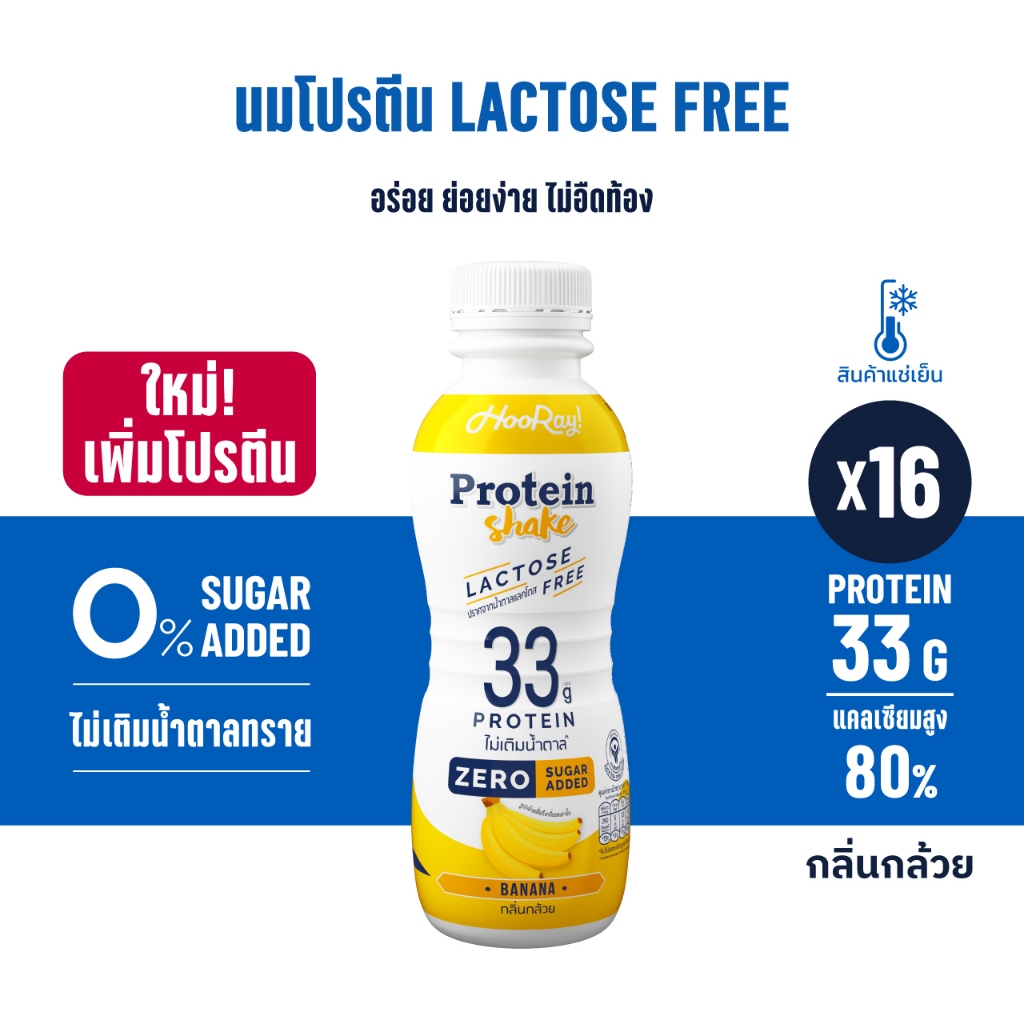 Hooray! Protein Shake Lactose Free นมโปรตีนสูตรเ วย์ Pack 16 ขวด รอบส่งวันที่ 12-14 [BBF28/03/2026]