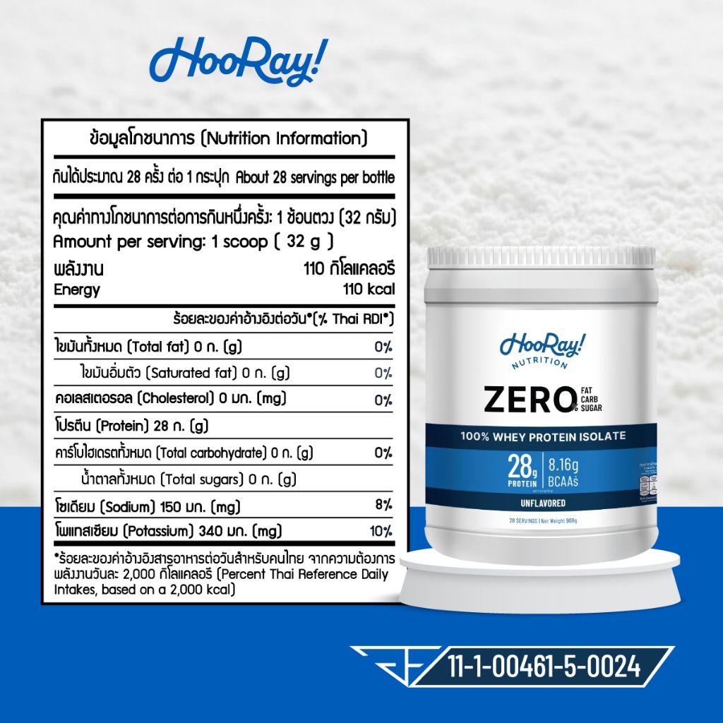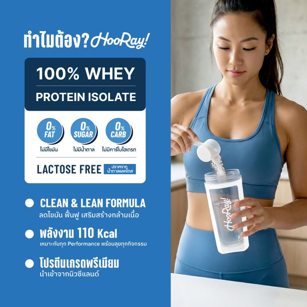 Hooray! Whey Protein Isolate เวย์โปรตีนไอโซเลท ขนาด 908g. - Unflavored (รสธรรมชาติ)