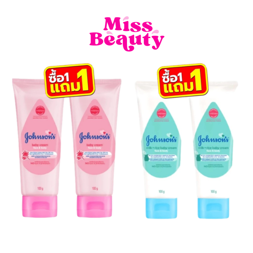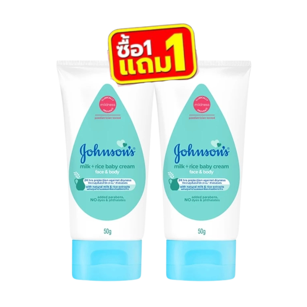 (1 แถม 1) Johnson's Milk + Rice Baby Cream Face & Body จอห์นสัน มิลค์ + ไรซ์ / เฟซ&บอดี้ เบบี้ ครีม เฟซ&บอดี้ 50/100ก.