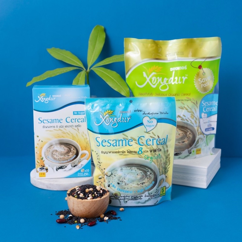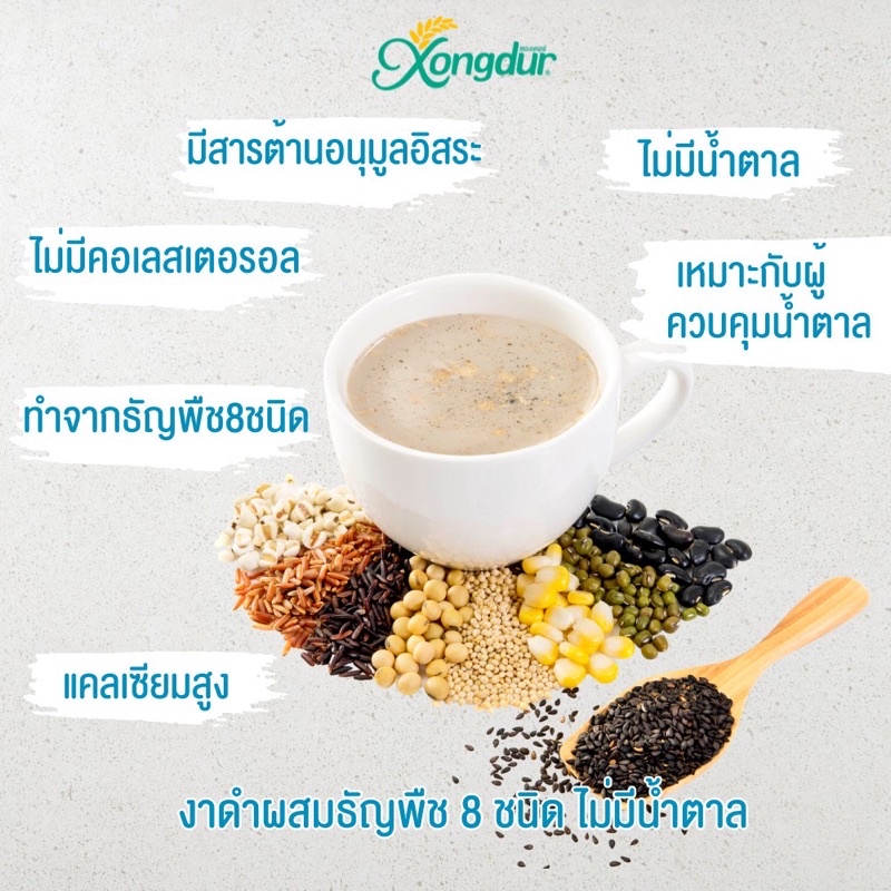 เครื่องดื่มเพื่อสุขภาพ ธัญญาหาร 8 ชนิด งาดำจืด งาดำหวานน้อย บรรจุ 15 ซอง Xongdur (ซองเดอร์)