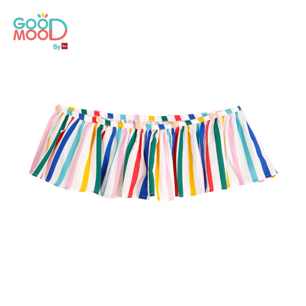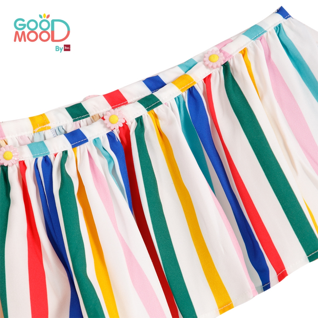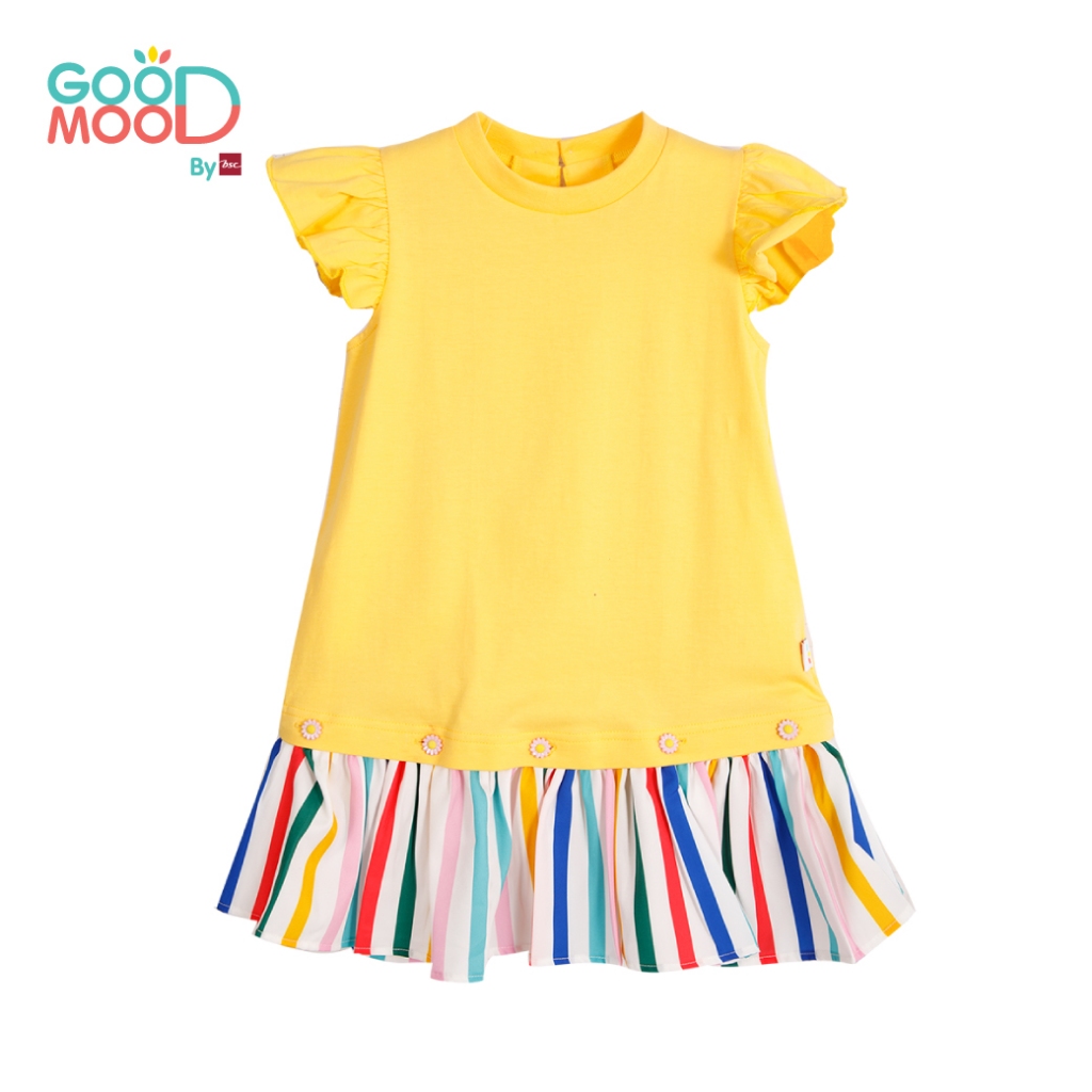 Good Mood by bsc เสื้อยืดแขนระบาย สีเหลือง+ชายกระโปรงลายริ้ว สำหรับเด็กอายุ 4-5 ปี ผ้าคอตตอน