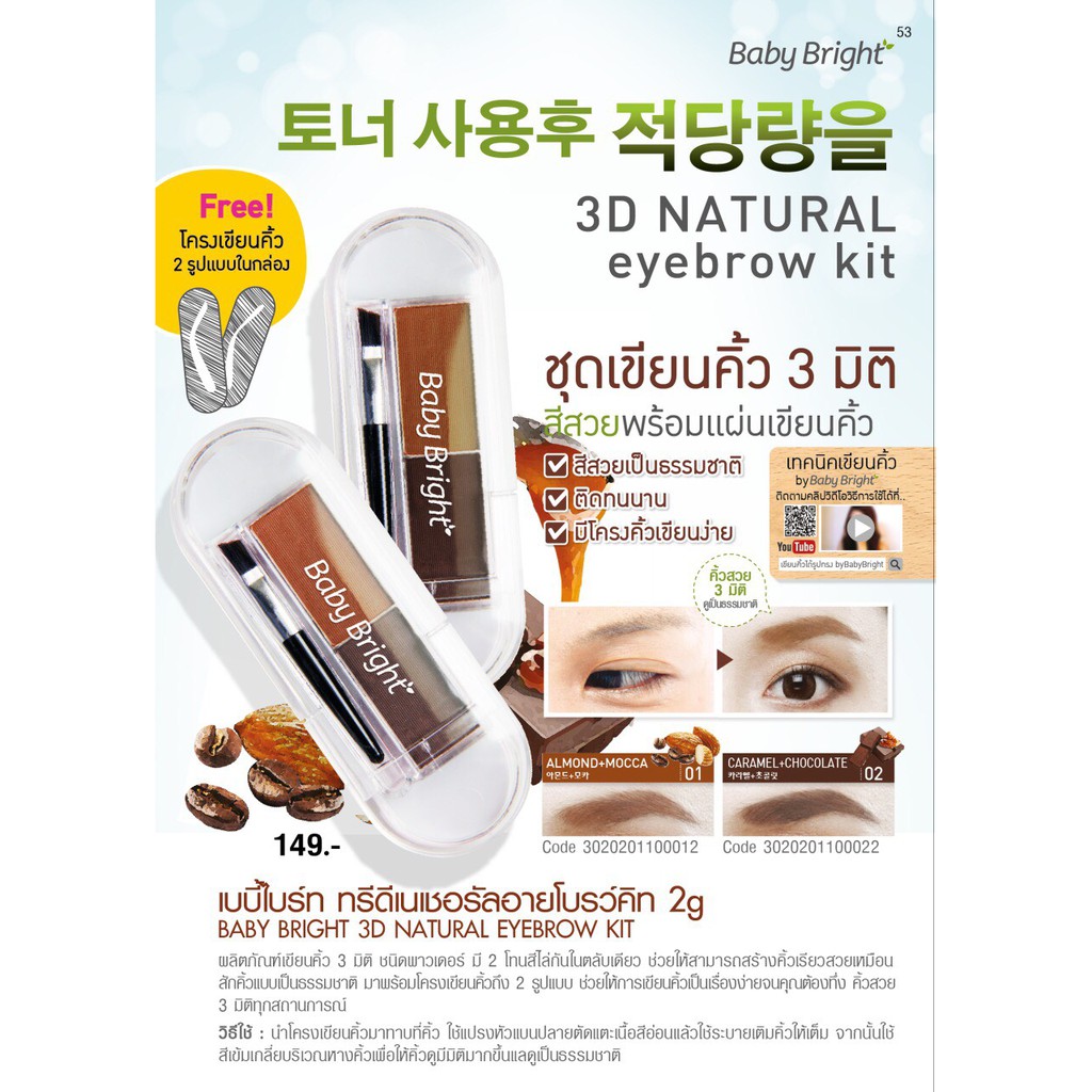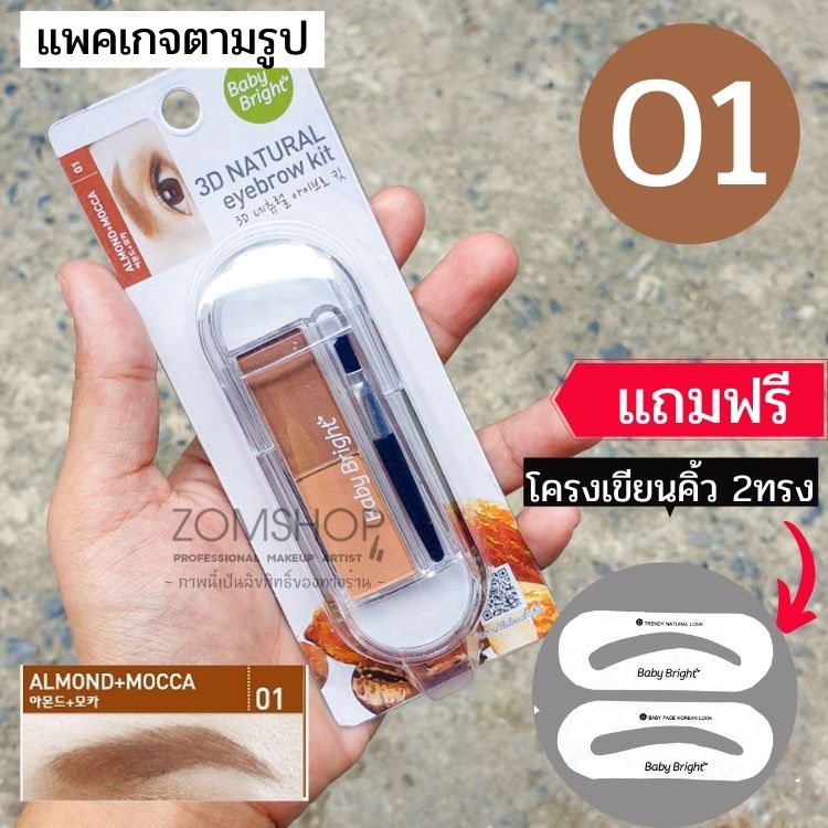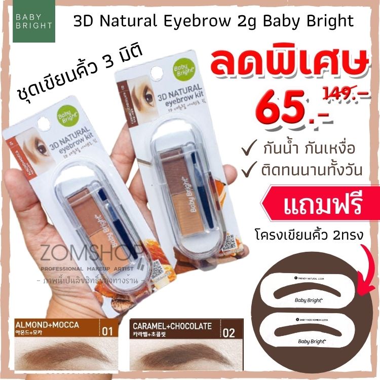 🌰ตลับเขียนคิ้ว อัลม่อน🌰 【แถมเพจวาดคิ้ว 2ทรง】 3D Natural Eyebrow 2g Baby Bright