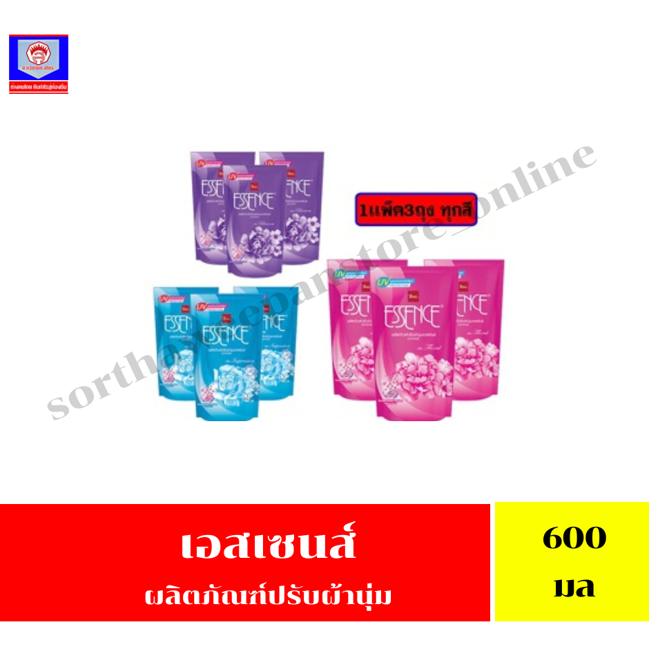 เอสเซนส์ น้ำยาปรับผ้านุ่ม สูตรซอฟเทนเนอร์ ป้องกันรังสี UV ขนาด 600 มล.(เเพ็ค3ถุง)
