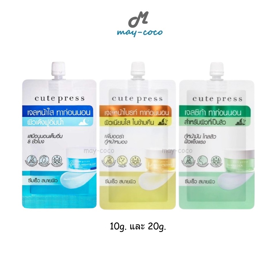 ถูก/แท้/มีไลฟ์ (ซอง) มาสก์ Cute Press Overnight Mask มาสก์คิวท์เพรส เนื้อเจล บำรุงผิว หน้าใส ชุ่มชื้น อ่อนโยน