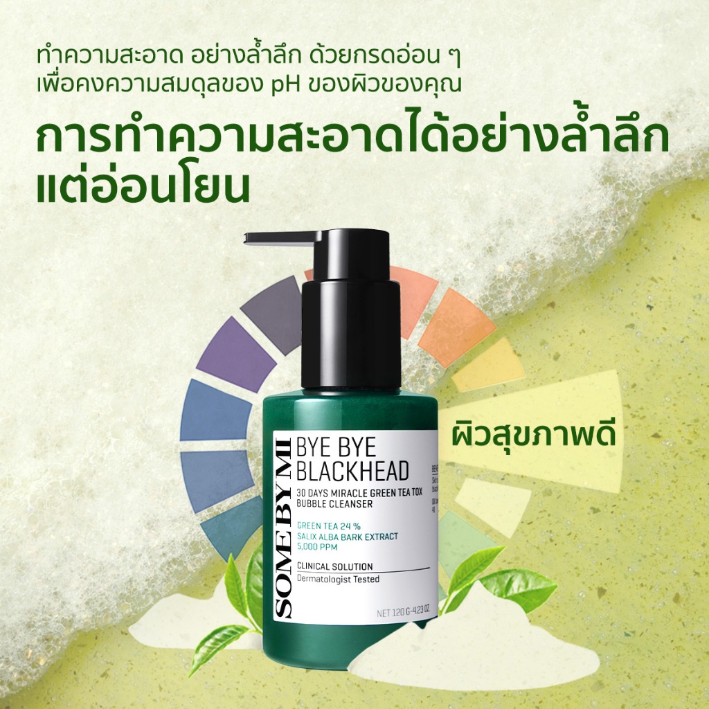 SOME BY MI Bye Bye Blackhead 30 Days Miracle Green Tea Tox Bubble Cleanser [120g], ดูแลสิ่งสกปรกในรูขุมขน, บับเบิ้ลดีพคลีนซิ่ง